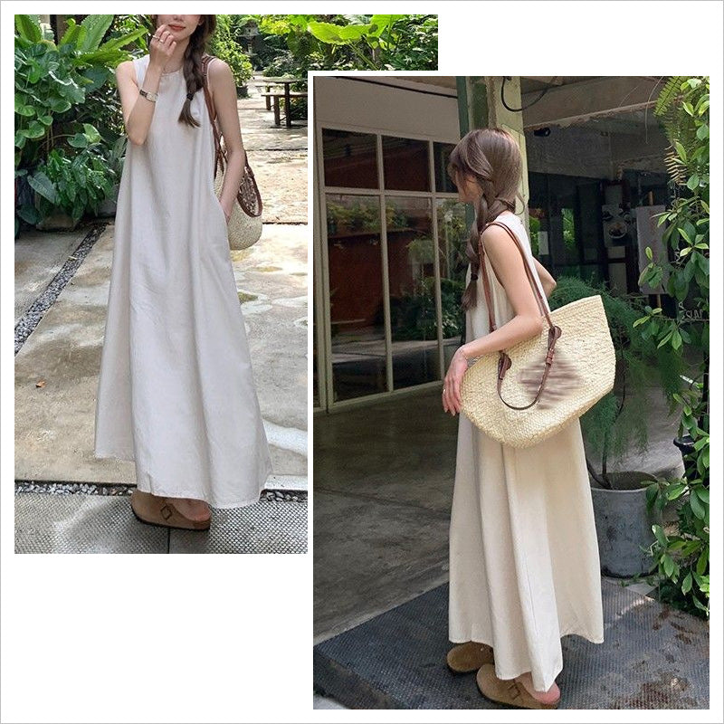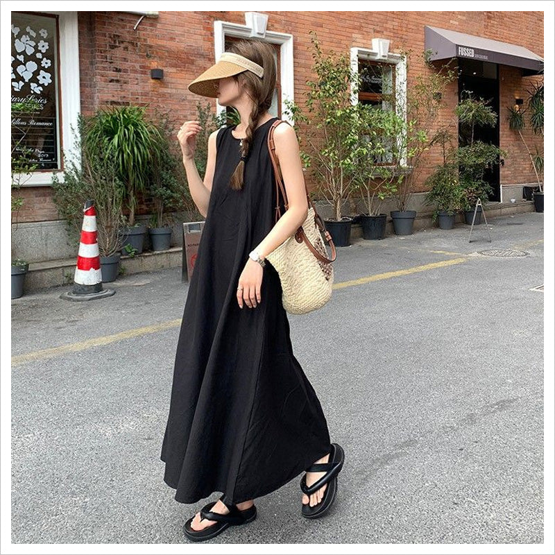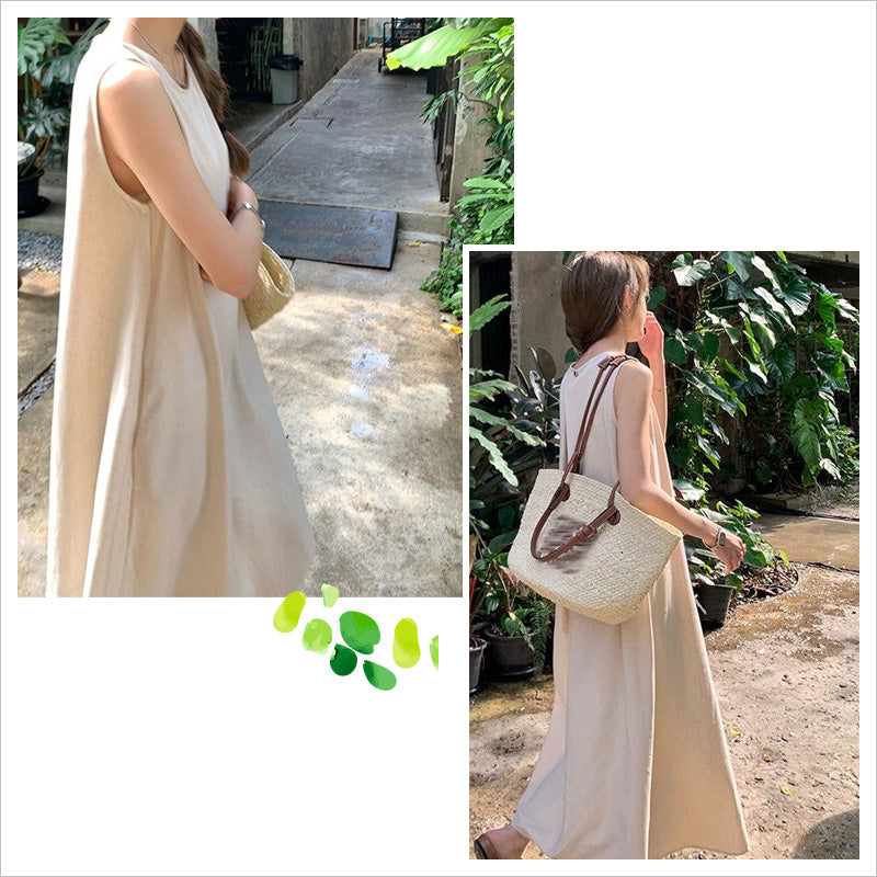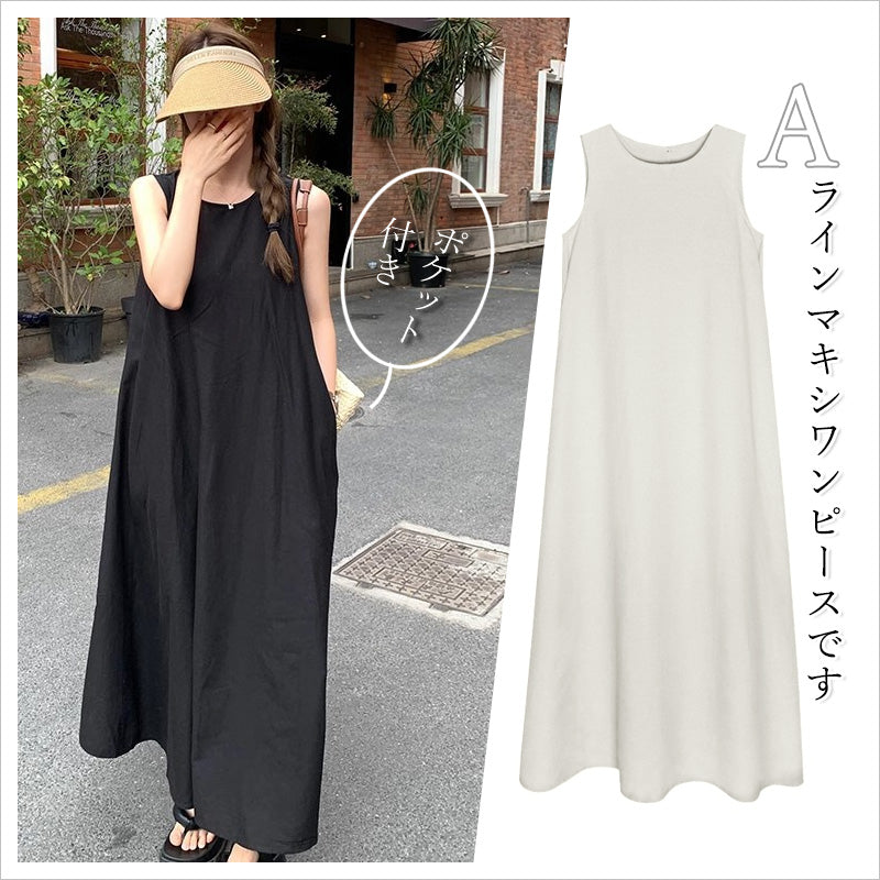★シンプルで洗練されたデザインが特徴のノースリーブドレスです。