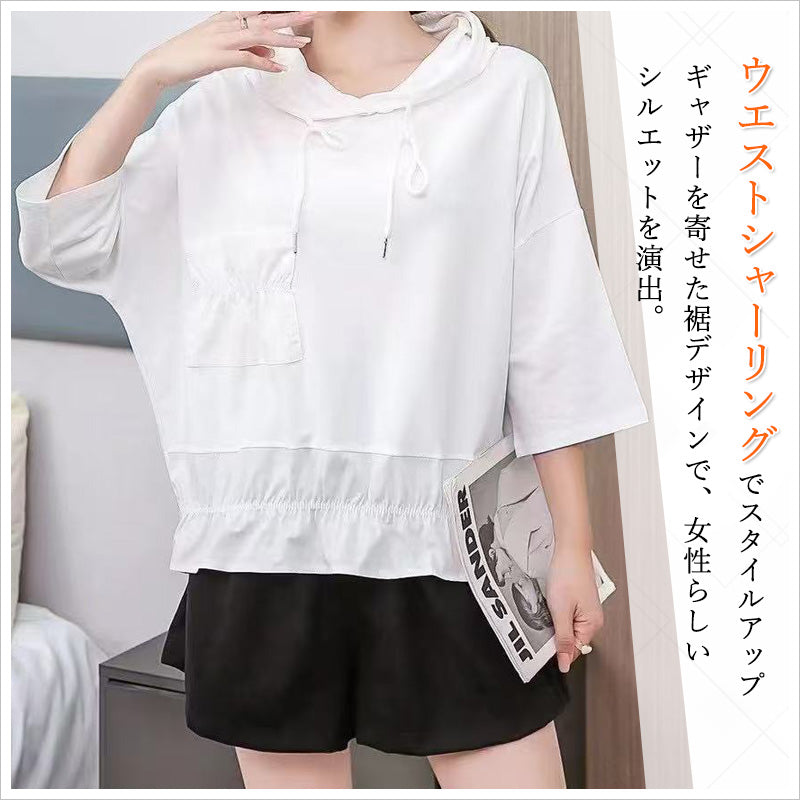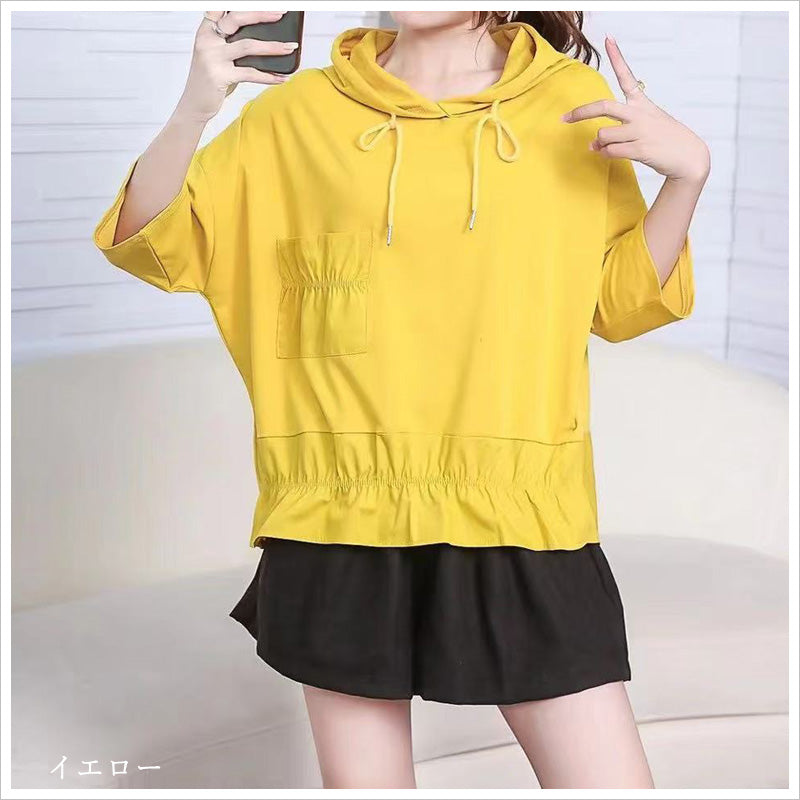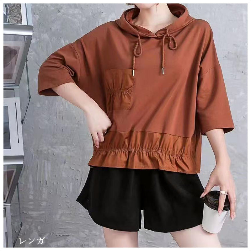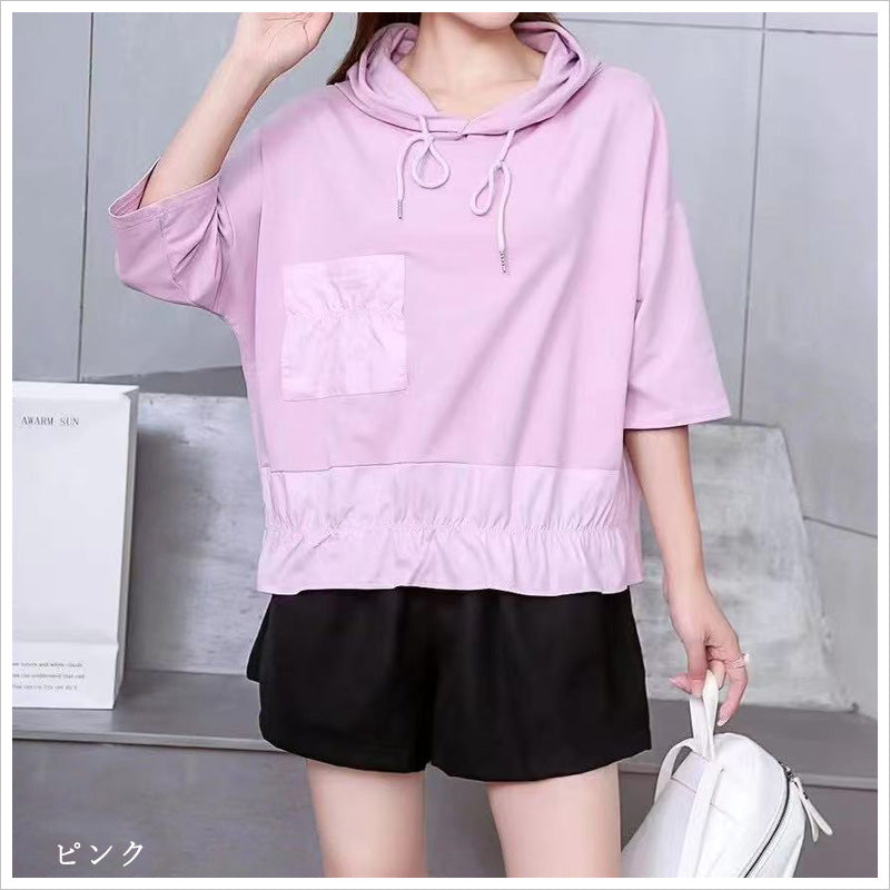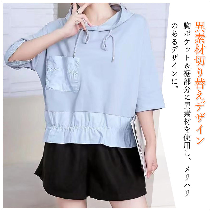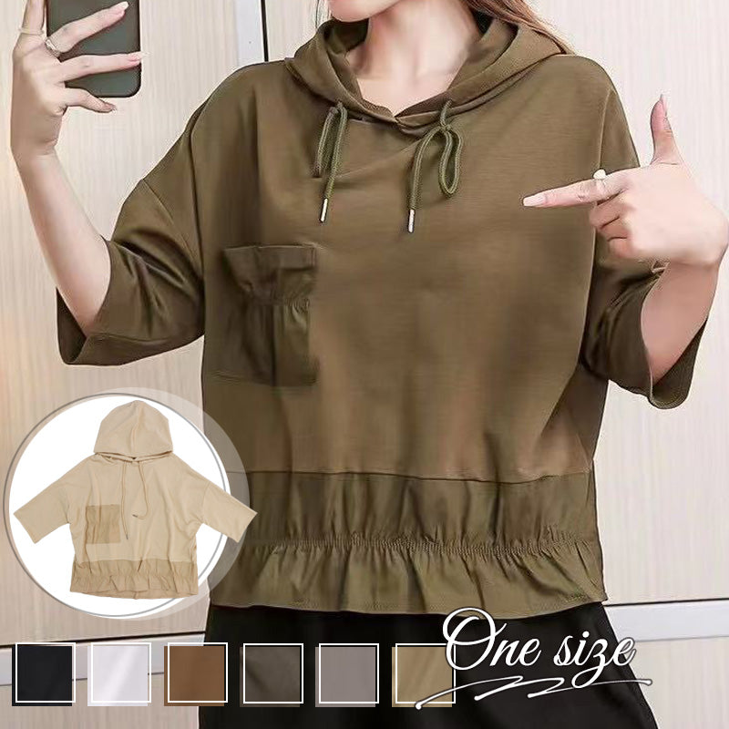 ★異素材切り替えデザイン:胸ポケットと裾部分に異素材を使用し、アクセントの効いたおしゃれなデザイン。 ★フード付きでカジュアル感アップ:程よいゆとりのあるフードがこなれ感を演出し、カジュアルな雰囲気に。 ★ウエストシャーリングで女性らしいシルエット:ギャザーを寄せた裾デザインで、さりげなくスタイルアップ。 ★ゆったりシルエットで体型カバー:オーバーサイズのシルエットが気になる部分を自然にカバー。 ★5分袖デザインで春夏にぴったり:二の腕をさりげなくカバーしつつ、涼しく快適な着心地。 ★軽やかで快適な素材:柔らかく通気性の良い生地を使用し、長時間の着用もストレスフリー。 ★カジュアルからフェミニンまで幅広く活躍:デニムやスカートとも相性抜群で、コーデの幅が広がる。 ★トレンド感のあるショート丈トップス:絶妙な丈感で、どんなボトムスともバランスがとりやすい。 ★デイリー使いに最適:お出かけはもちろん、ワンマイルウェアやルームウェアとしてもおすすめ。 ★豊富なカラーバリエーション:シンプルカラーから華やかな色まで、お好みに合わせて選べる全8色展開。 |