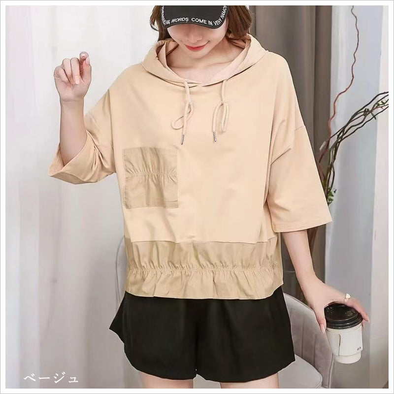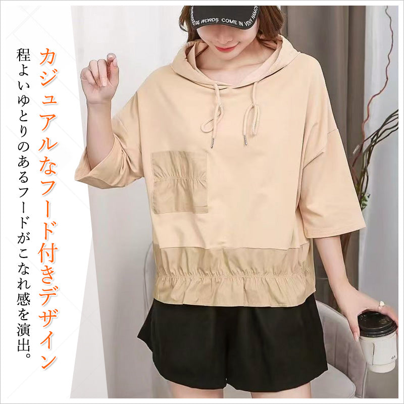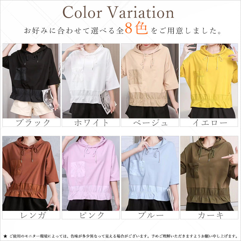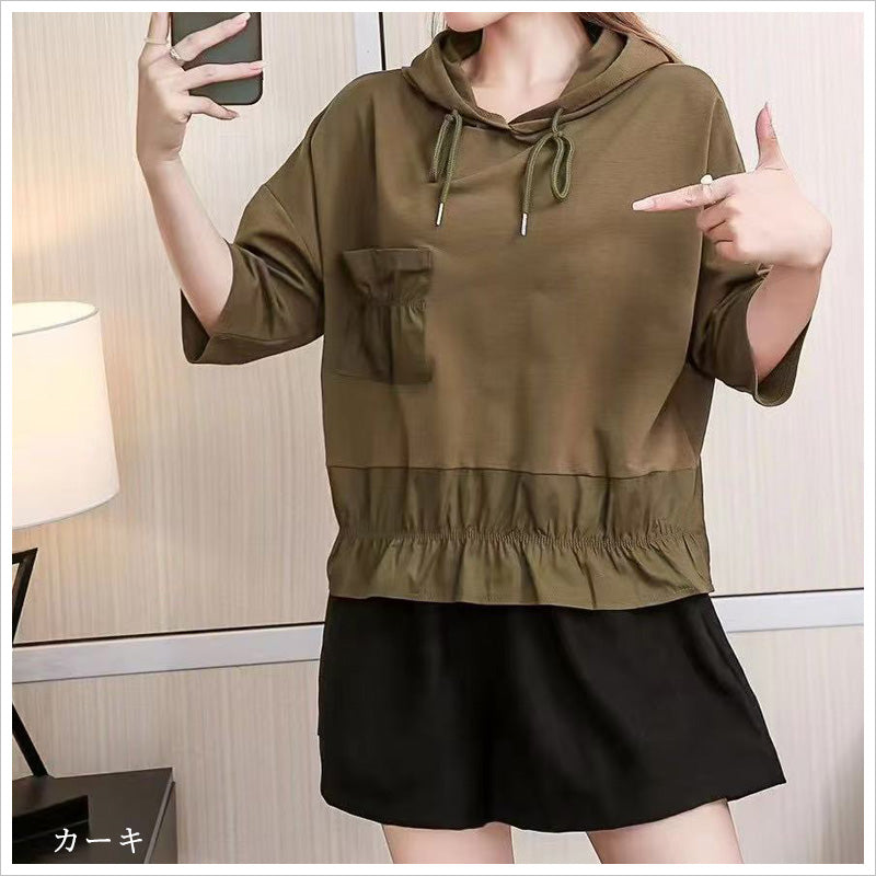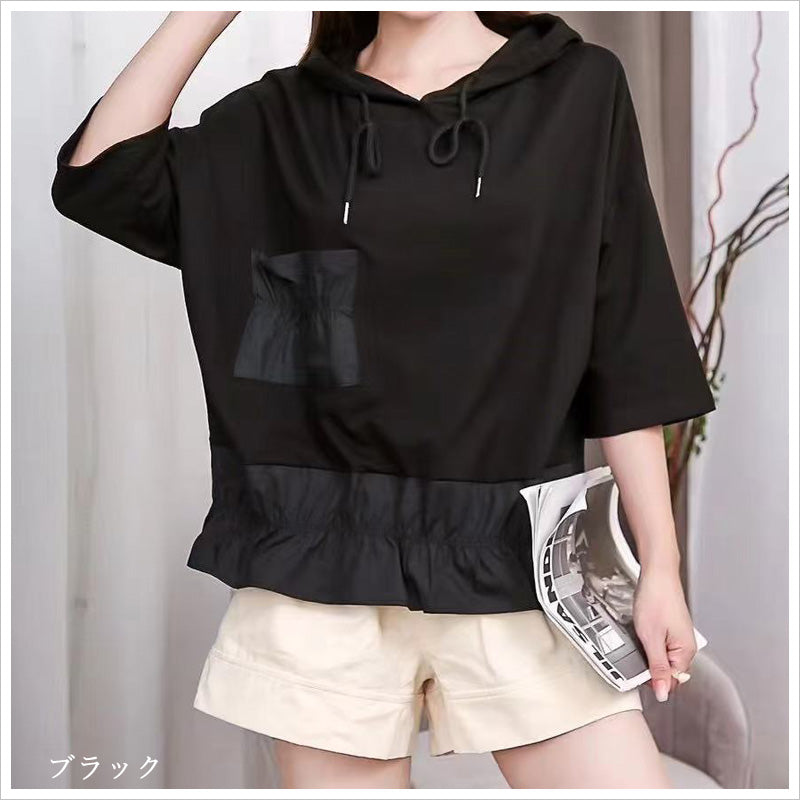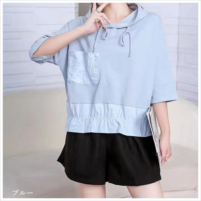 ★異素材切り替えデザイン:胸ポケットと裾部分に異素材を使用し、アクセントの効いたおしゃれなデザイン。 ★フード付きでカジュアル感アップ:程よいゆとりのあるフードがこなれ感を演出し、カジュアルな雰囲気に。 ★ウエストシャーリングで女性らしいシルエット:ギャザーを寄せた裾デザインで、さりげなくスタイルアップ。 ★ゆったりシルエットで体型カバー:オーバーサイズのシルエットが気になる部分を自然にカバー。 ★5分袖デザインで春夏にぴったり:二の腕をさりげなくカバーしつつ、涼しく快適な着心地。 ★軽やかで快適な素材:柔らかく通気性の良い生地を使用し、長時間の着用もストレスフリー。 ★カジュアルからフェミニンまで幅広く活躍:デニムやスカートとも相性抜群で、コーデの幅が広がる。 ★トレンド感のあるショート丈トップス:絶妙な丈感で、どんなボトムスともバランスがとりやすい。 ★デイリー使いに最適:お出かけはもちろん、ワンマイルウェアやルームウェアとしてもおすすめ。 ★豊富なカラーバリエーション:シンプルカラーから華やかな色まで、お好みに合わせて選べる全8色展開。 |