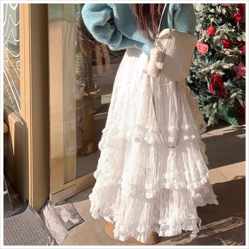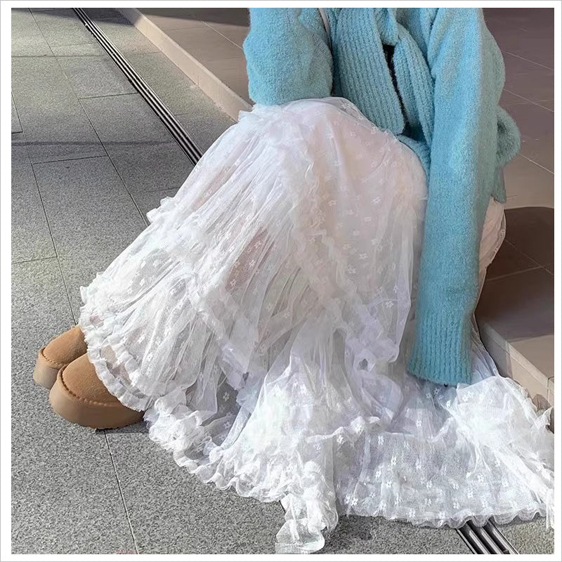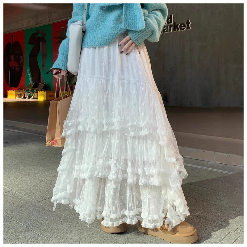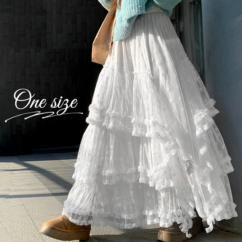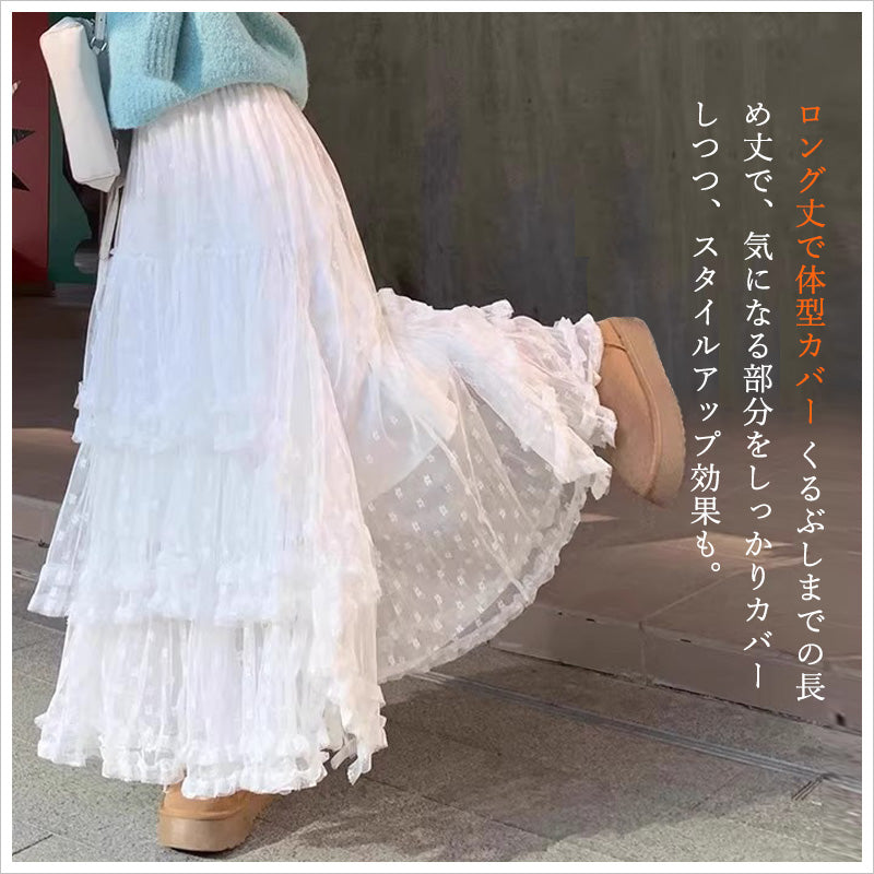 RA1011 スカート レース ロング ティアード ふんわり ガーリー ウエストゴム