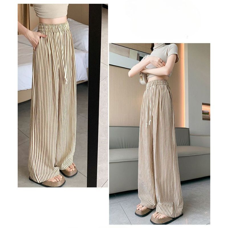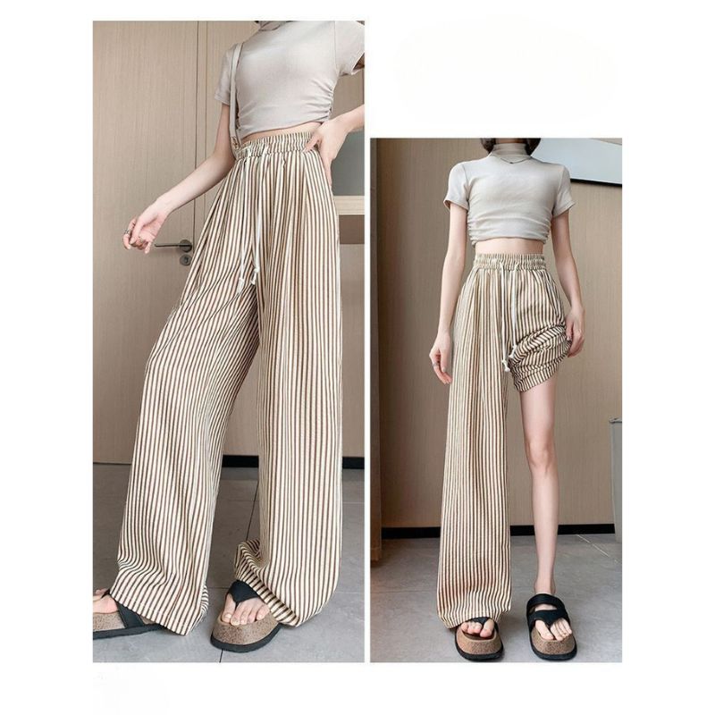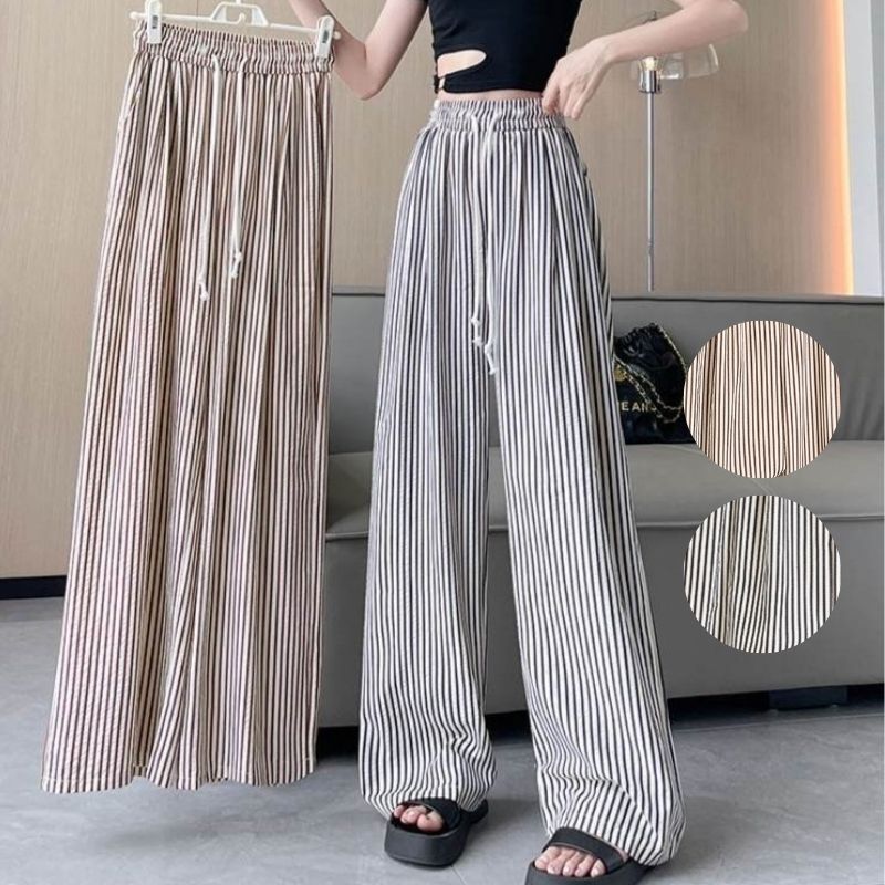 RA1031 ストライプワイドパンツ レディース 薄手 美脚 脚長効果 ハイウエスト ゆったり リラックス