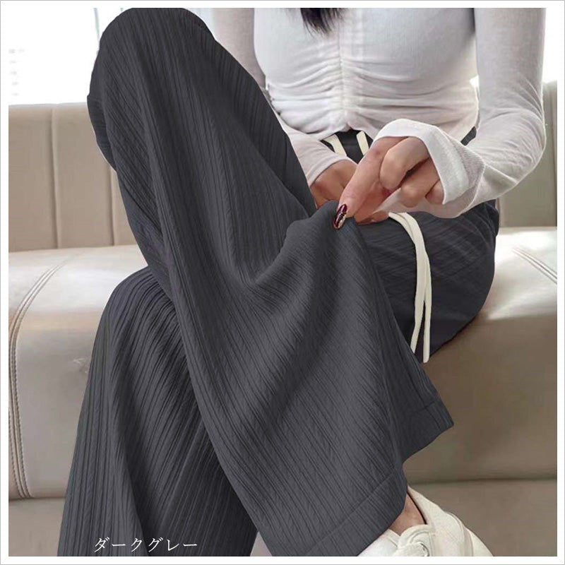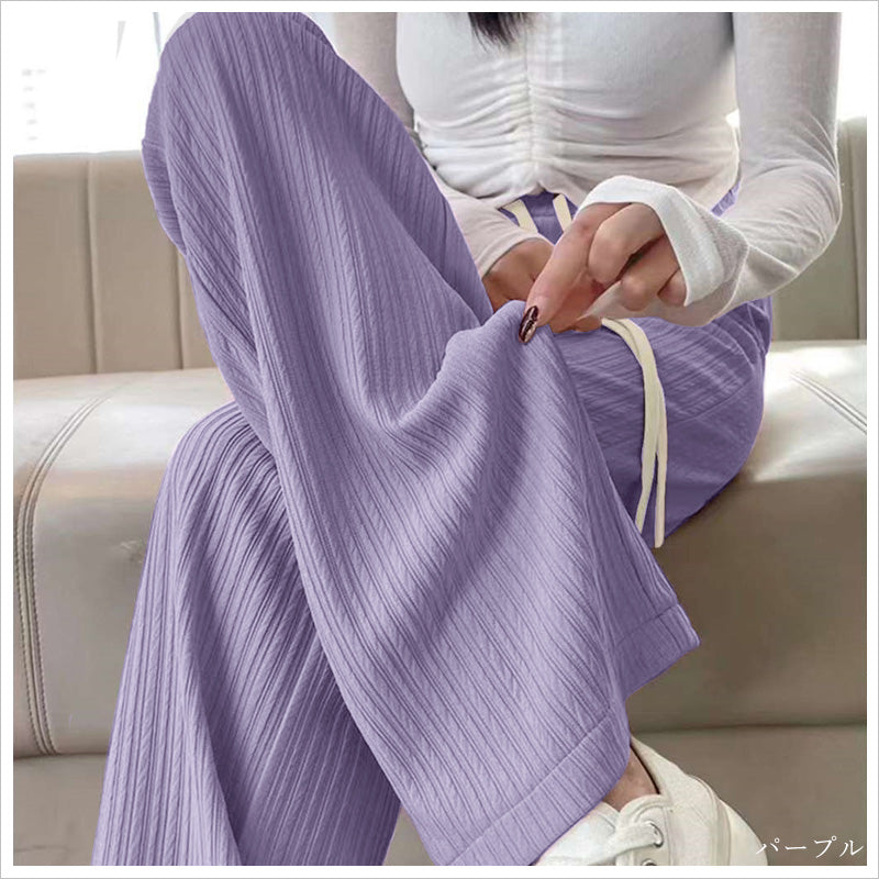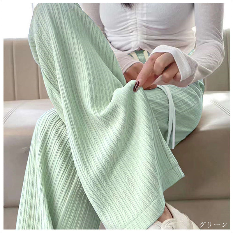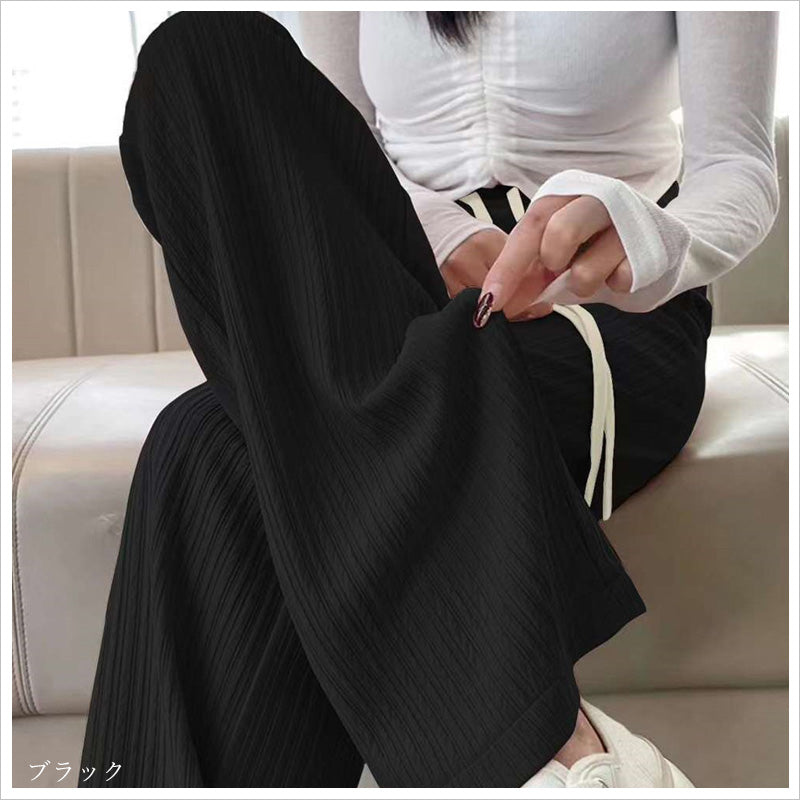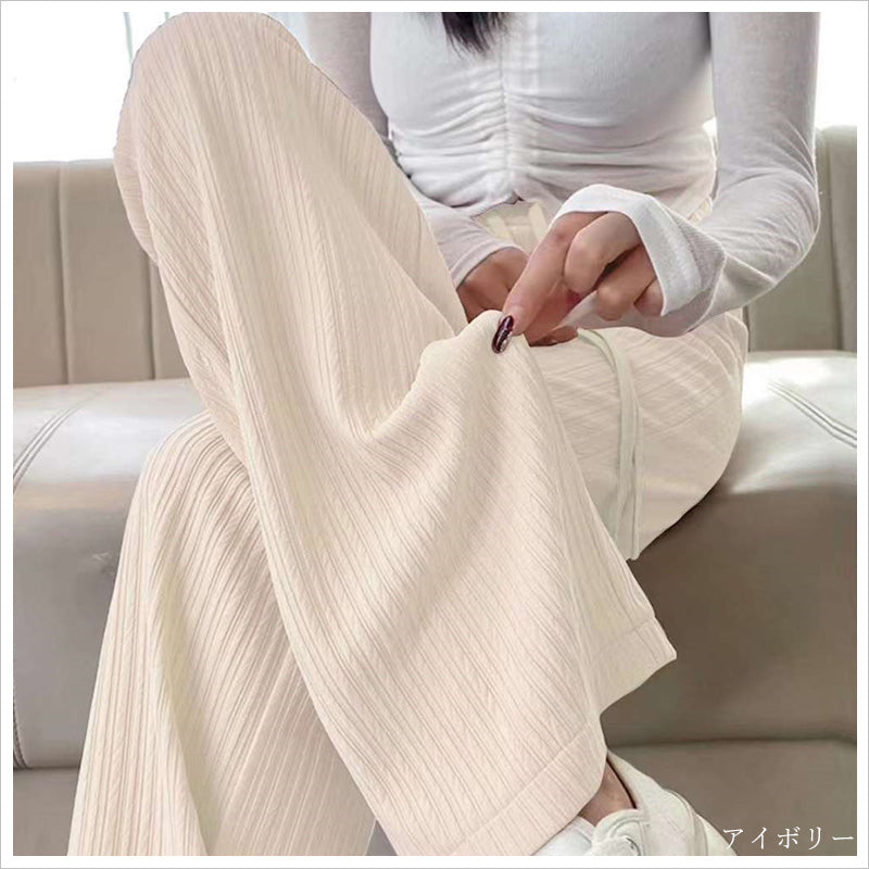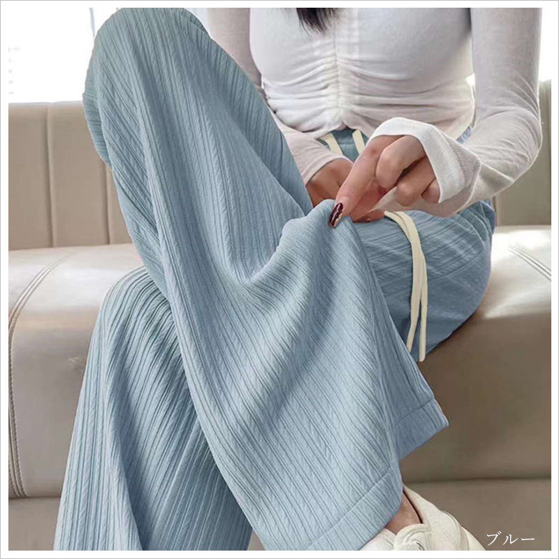 RA1032 ワイドパンツ リブパンツ 美脚 レディース 体型カバー