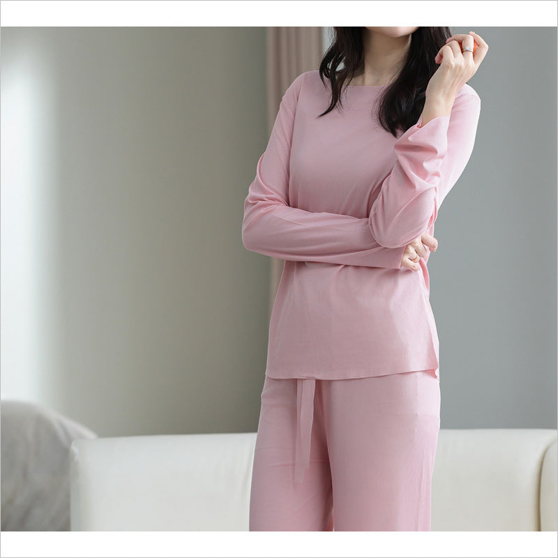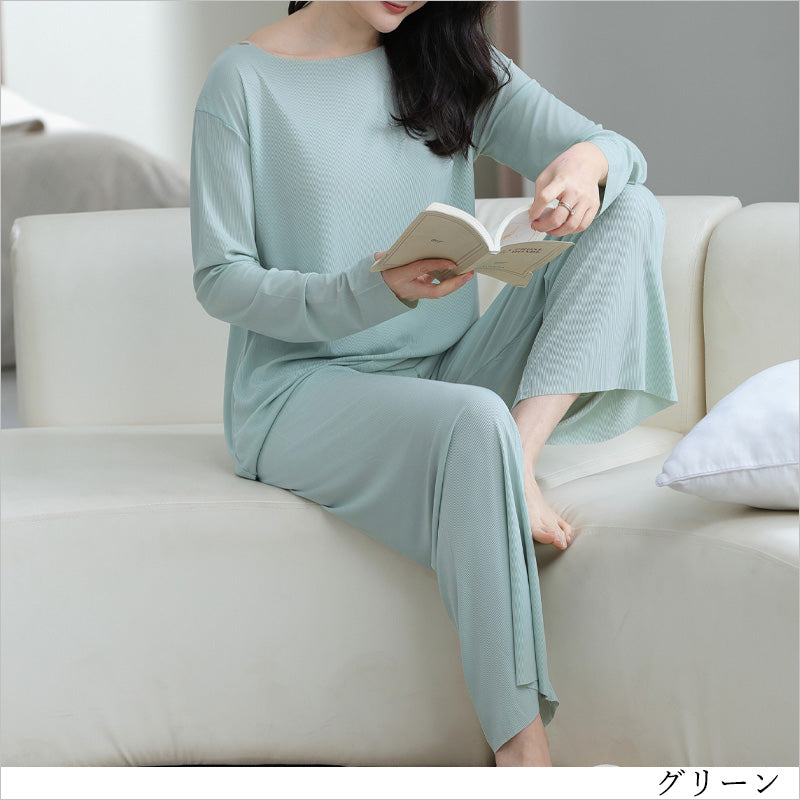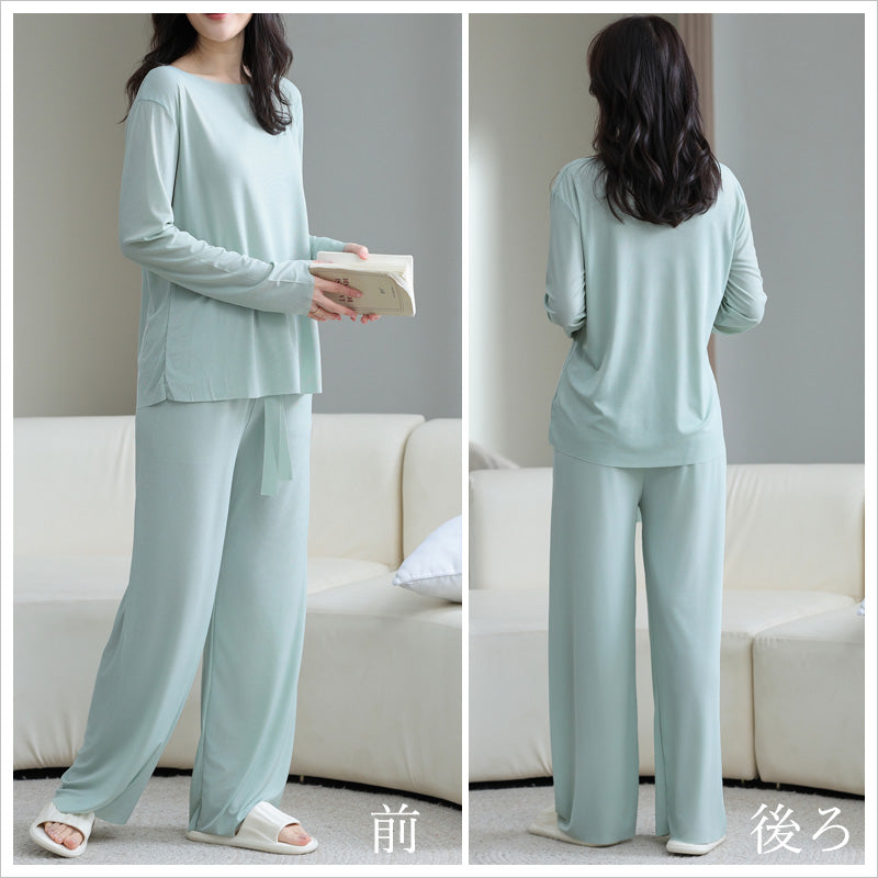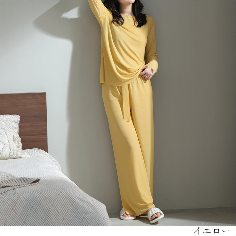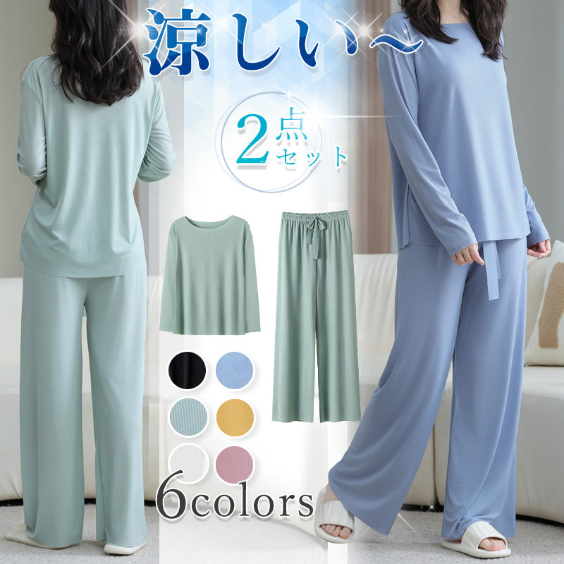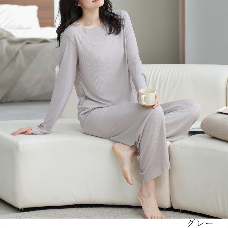 | 商品特徴 | ★ひんやり涼感素材:肌に触れるとひんやり気持ちいい接触冷感生地で、暑い季節も快適に過ごせます。 ★さらっと軽やかな着心地:やや薄手の素材で通気性が良く、汗ばむ季節でもべたつかず快適です。 ★しっとり柔らかストレッチ:縦横に伸びるストレッチ素材で、動きやすくストレスフリーな着心地。 ★冷房対策にも最適:長袖&長ズボン仕様なので、冷房の効いた室内でも冷えすぎを防げて安心。 ★ウエストゴムで楽ちん:パンツのウエスト部分はゴム+ドローストリング仕様で、脱ぎ着もラクラク。 ★丸首デザインで着脱簡単:首元はベーシックなラウンドネックで、着脱しやすくどなたでも似合う形です。 ★シワになりにくい素材:扱いやすいやや薄手の素材で、洗ってもシワになりにくくお手入れも簡単。 ★全6色の豊富なカラバリ:ブラック、グレー、ブルー、グリーン、イエロー、ピンクの全6色展開。 ★切りっぱなし風デザイン:ほつれにくい仕様で安心。生地の特性を活かしたナチュラルな仕上がり。 |