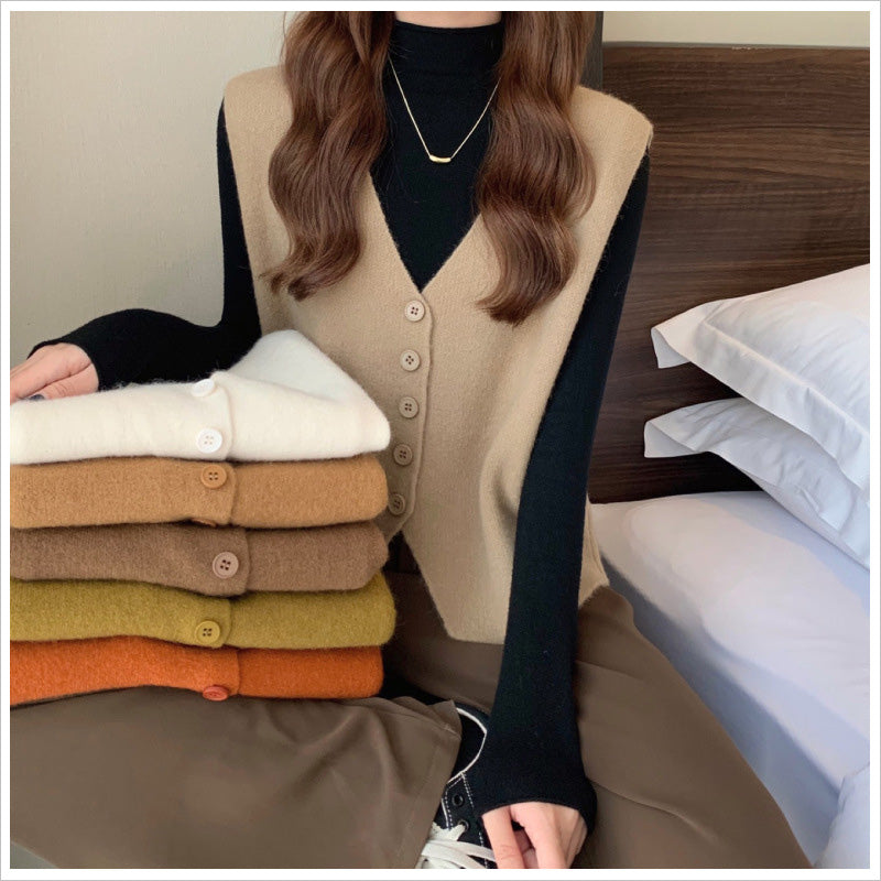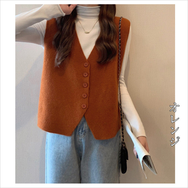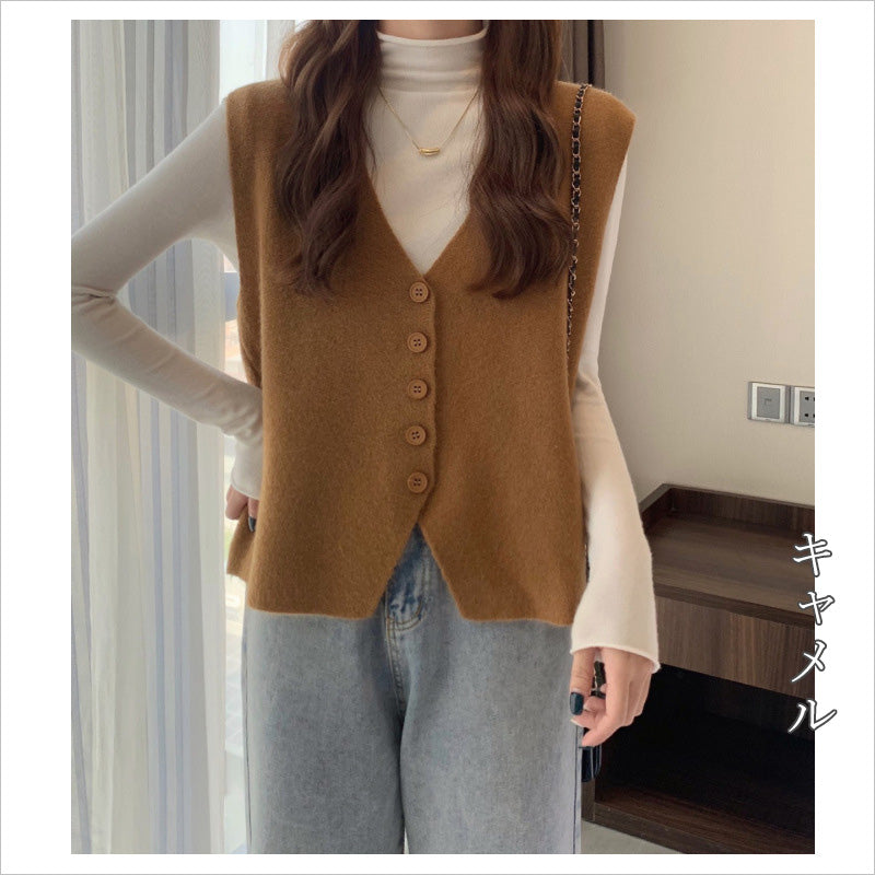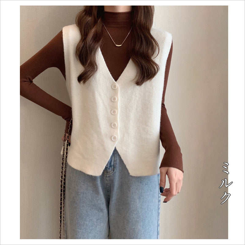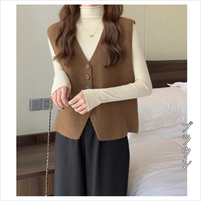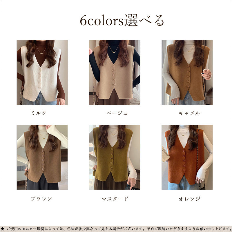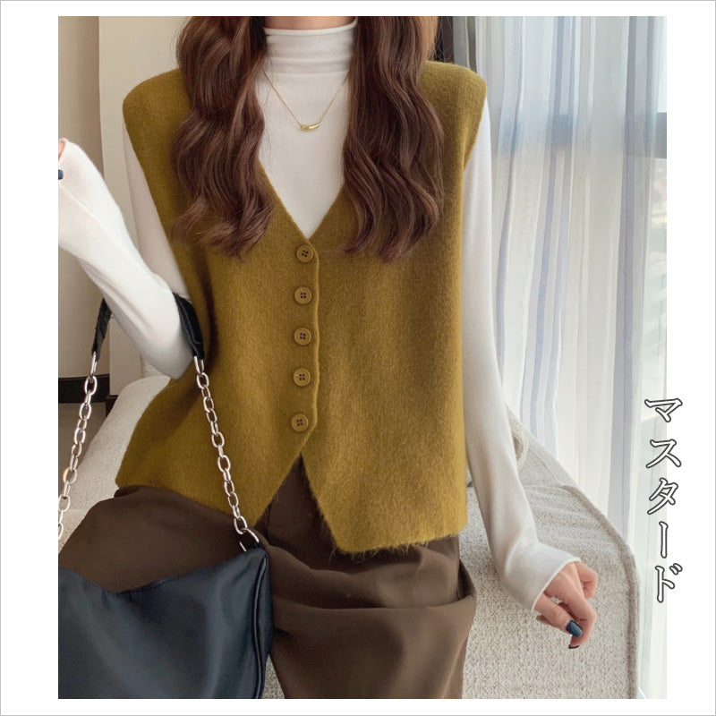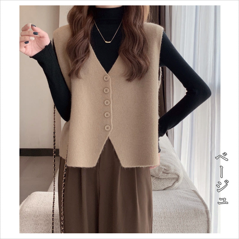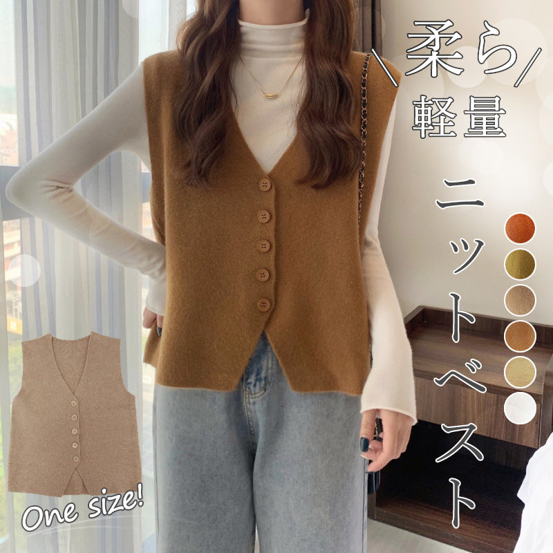 ・シンプルなVーネックボタンニットベストが登場♪ ・首元がVーネックデザインなのでスッキリとした印象を与えてくれます。 ・シャツ、ハイネックやTシャツなどレイヤード次第で、カジュアルからキレイめに大人っぽく着こなせれる優れものアイテム♪ ・オフィスや通勤などでは洗練されたレディーになり、カジュアルなどの場合でも大人ヌケ感を引き出してくれて嬉しい。 |