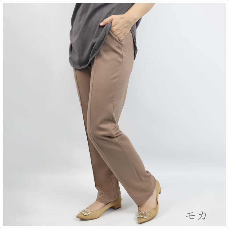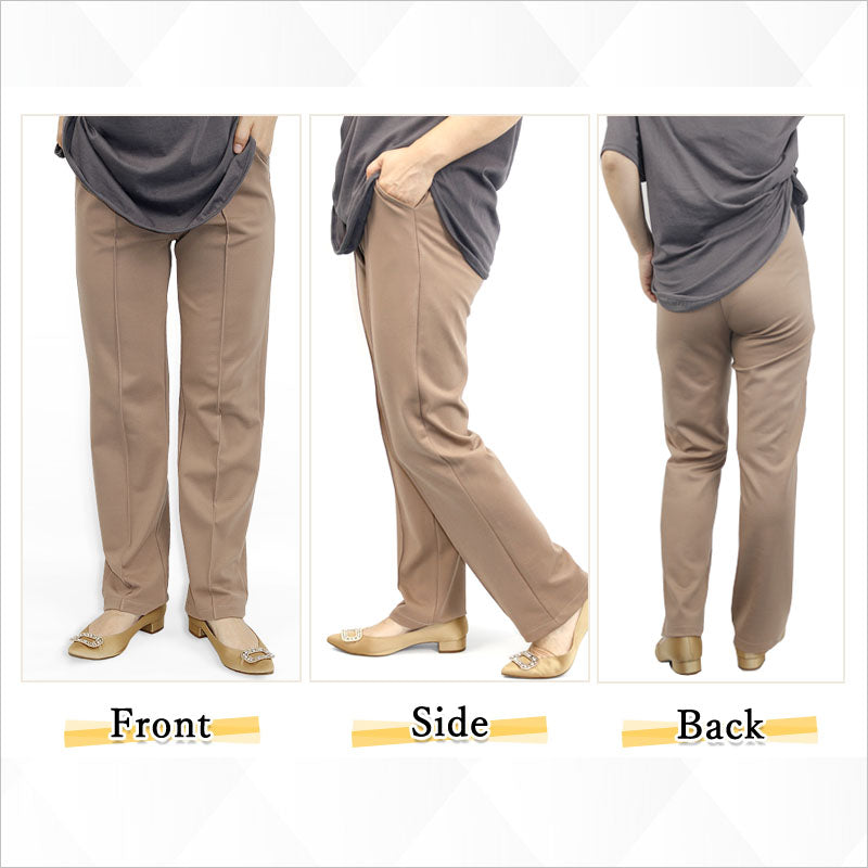 | 商品特徴 | ★センタープレスが入っており、洗練された印象を与えます。脚をすっきりと長く見せる効果があります。 ★シンプルでエレガントなスタイルを求める方におすすめのデザインです。 ★ハイウエストデザインで股上が深めの設計で、お腹をすっぽりと覆うため、安心感があります。しゃがんでもウエストがずれにくく、下着がはみ出しません。 ★生地は手触りが柔らかく、縦横の両方に伸縮性があり、着心地がとても快適です。 ★ウエスト部分はゴム仕様になっており、履きやすさと動きやすさが特徴です。 ★春、夏、秋と様々な季節で快適に着用できるオールシーズン対応のパンツです。 |