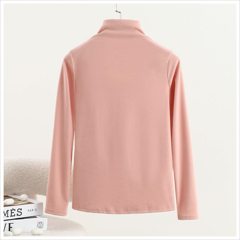 ハイネック:首回りをすっきり見せるハイネックデザインが特徴。