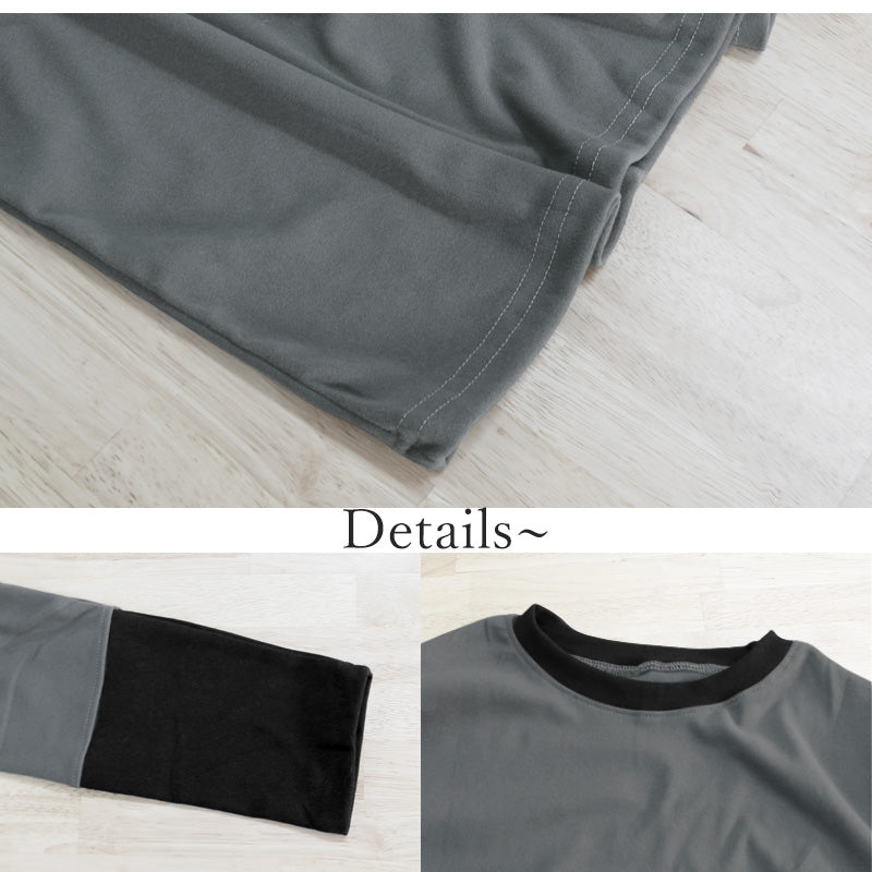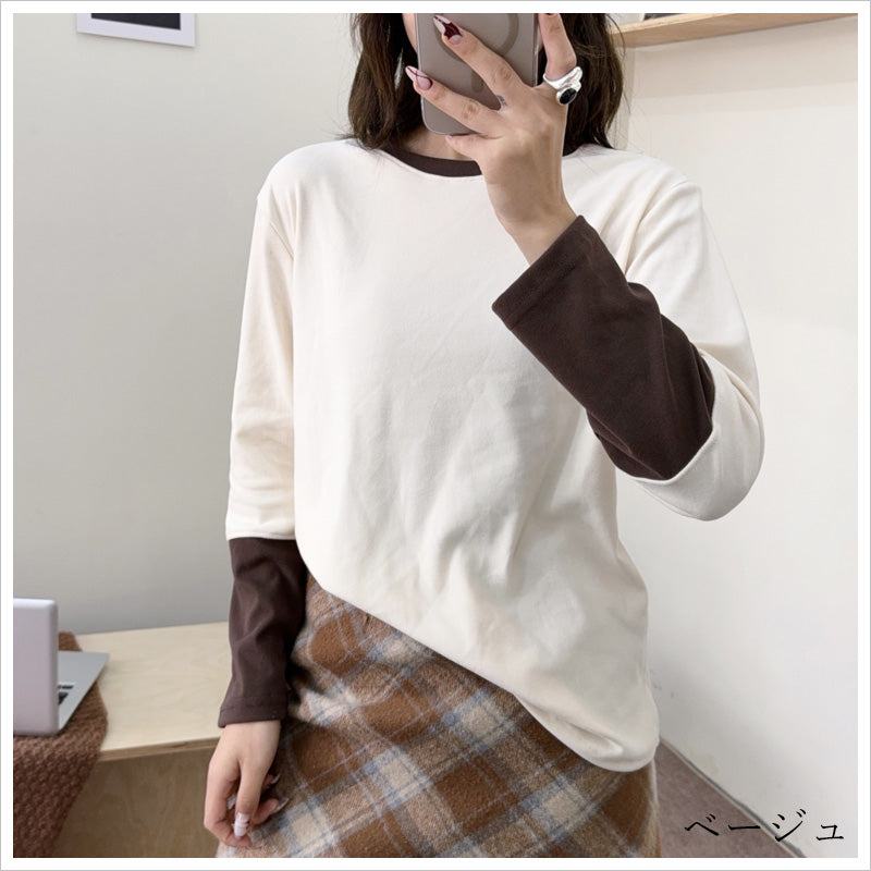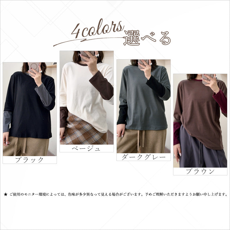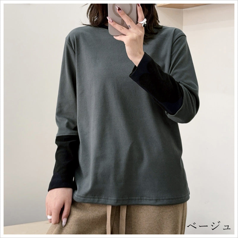 RA970 長袖 トップス カットソー 配色切り替え アクセント デザイン おしゃれ 上品 スタイルアップ カジュアル