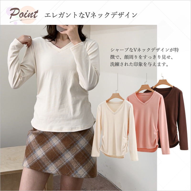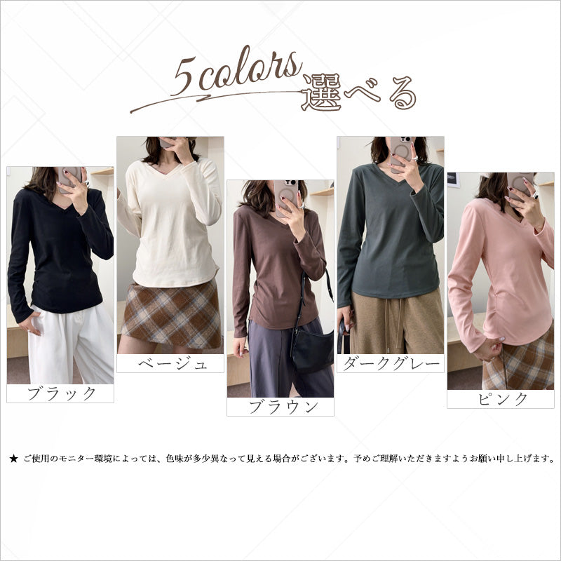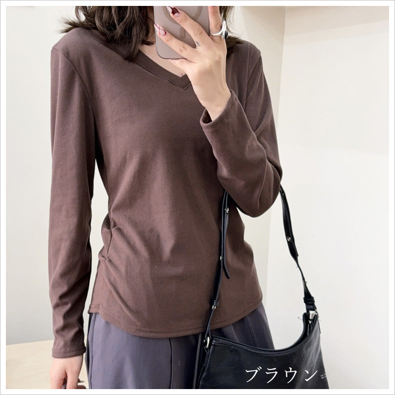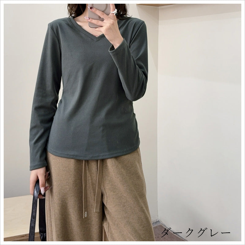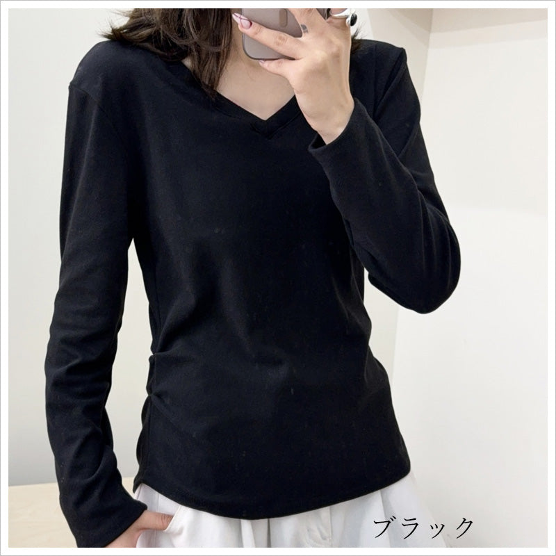 RA971 長袖 トップス カットソー Vネック デザイン おしゃれ 上品 スタイルアップ カジュアル