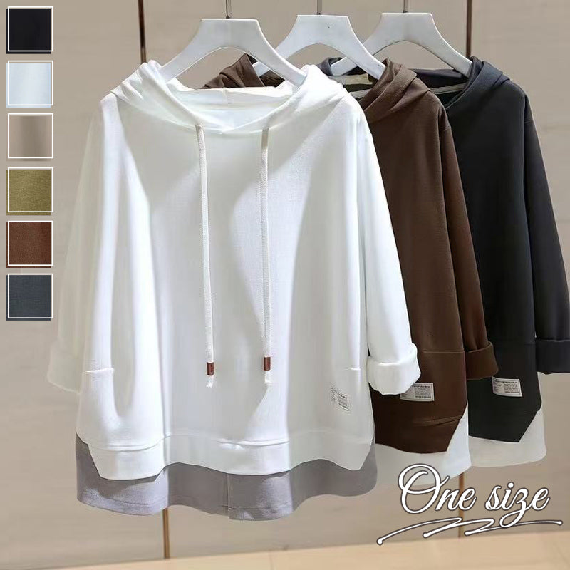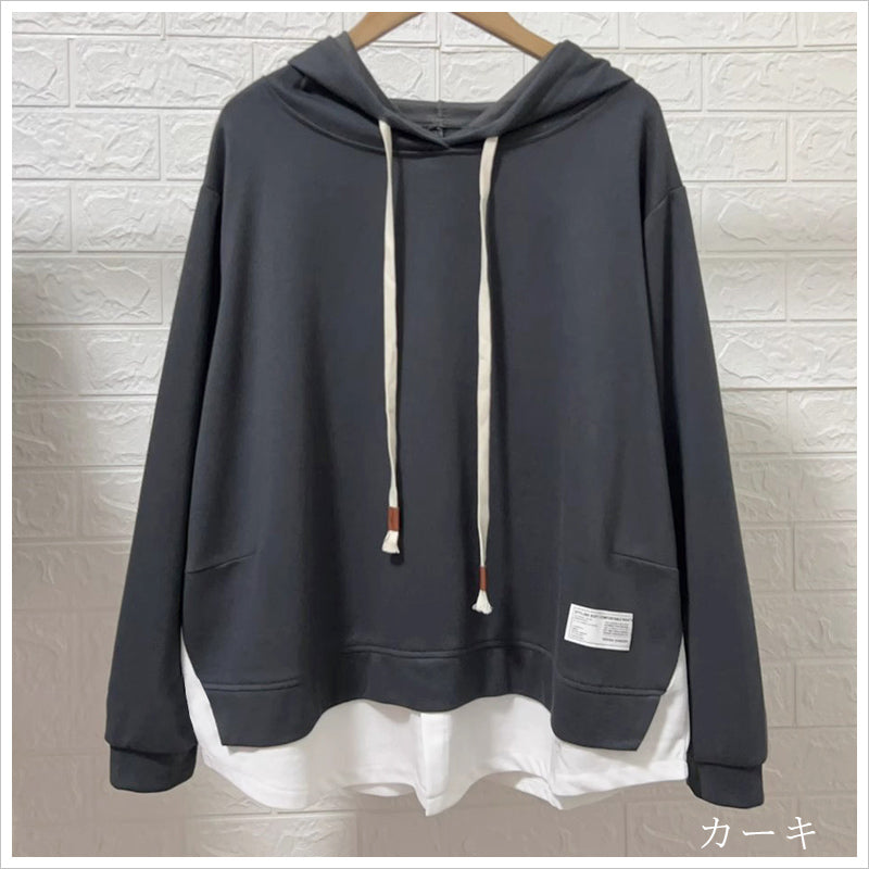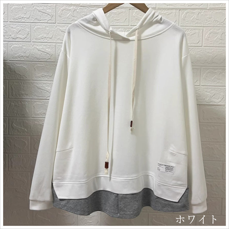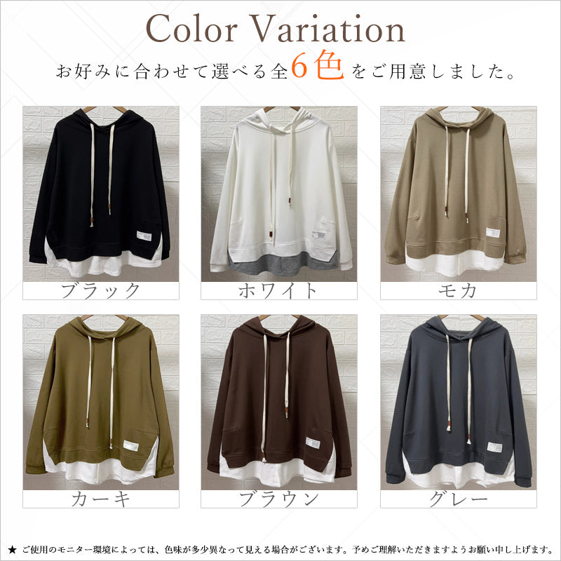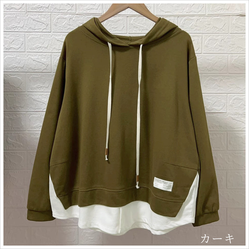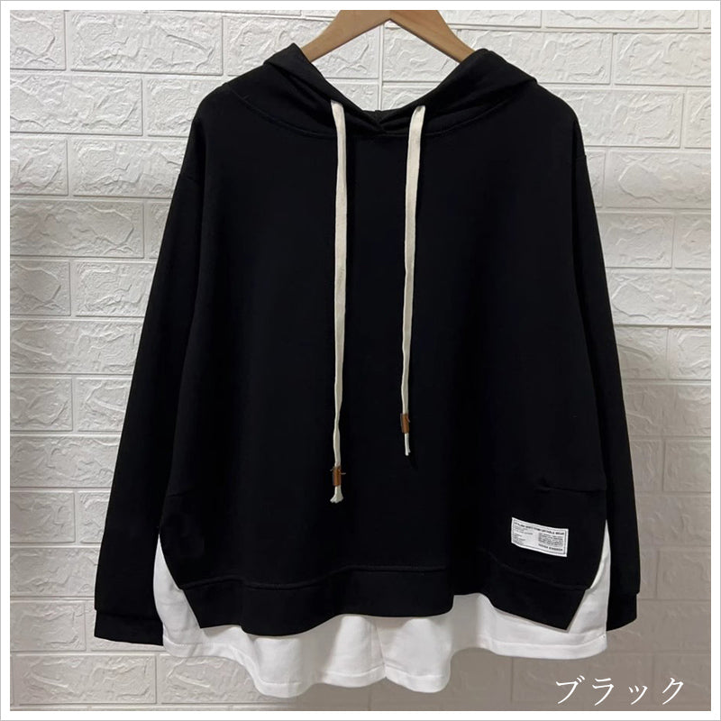 RA993 トップス ゆったり フィット リラックス フード オーバーサイズ 重ね着風 体型カバー レイヤード風