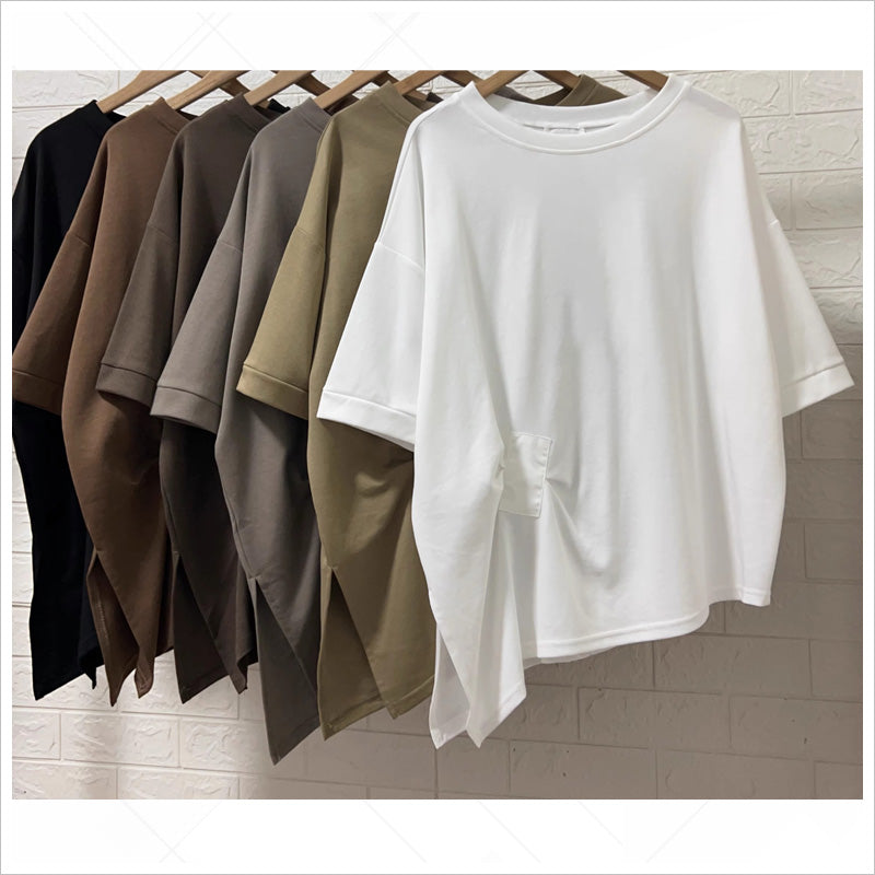 | 商品特徴 | ★アシンメトリーデザイン: 片側にスリットを入れた裾のデザインが、抜け感を演出しこなれた印象に。 ★異素材切り替え: 背面に異素材を使用し、後ろ姿までおしゃれに決まるデザイン。 ★フロントのタックデザイン: フロントの立体的なタックがアクセントになり、シンプルなのに個性的。 ★ゆったりオーバーサイズ: リラックス感のあるシルエットで、体型カバーも叶う。 ★6色展開: ブラック・ホワイト・グレー・ブラウンなど、着回しやすい落ち着いたカラーが揃う。 ★動きやすい快適素材: さらっとした肌触りで、ストレスフリーな着心地を実現。 ★デイリーコーデに最適: シンプルだけどおしゃれなデザインで、カジュアルからキレイめまで幅広く対応。 ★着回し力抜群: デニム、ワイドパンツ、スカートなど、さまざまなボトムスと相性◎。 ★前後で異なるデザイン: 正面と背面で異なるデザインが施され、どの角度から見てもおしゃれな印象に。 |
