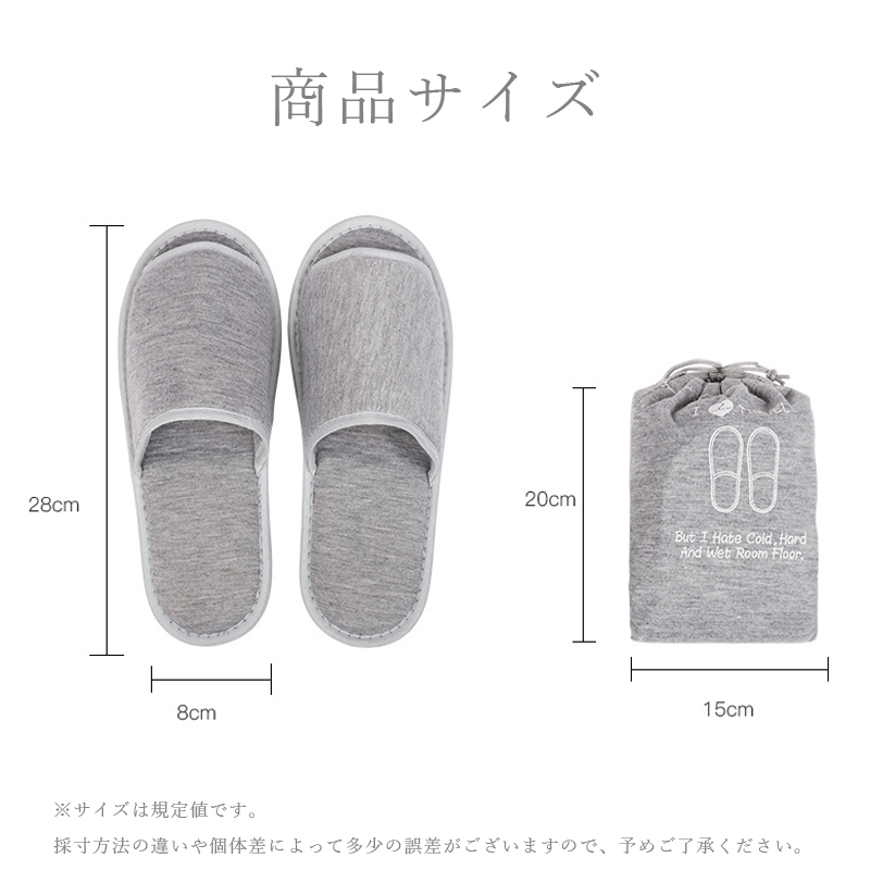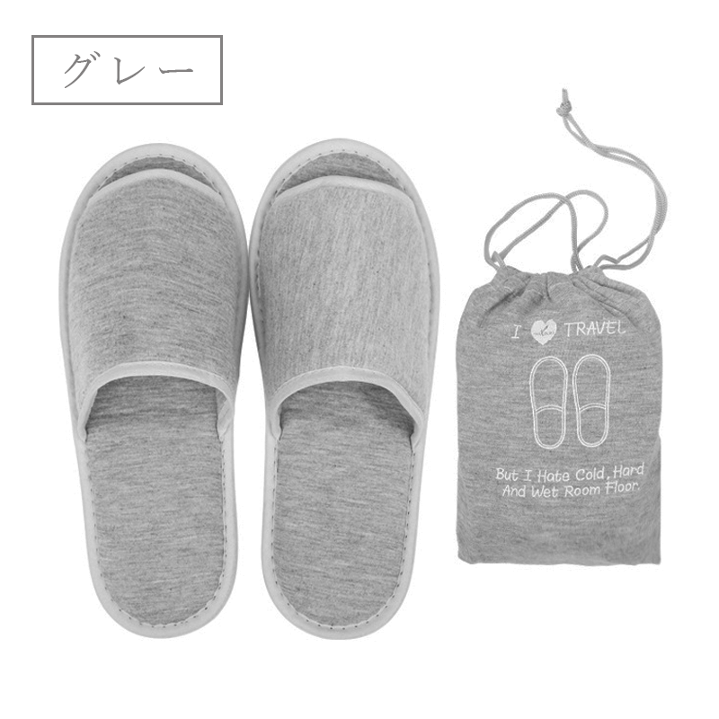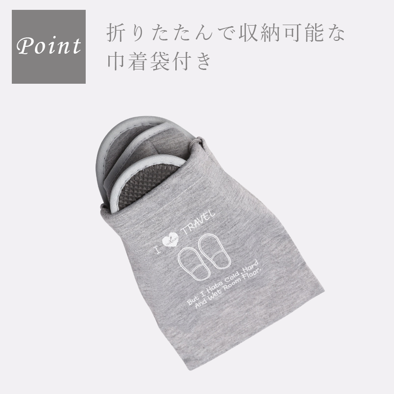 収納袋付きで折りたためるのでとても便利な携帯スリッパです。