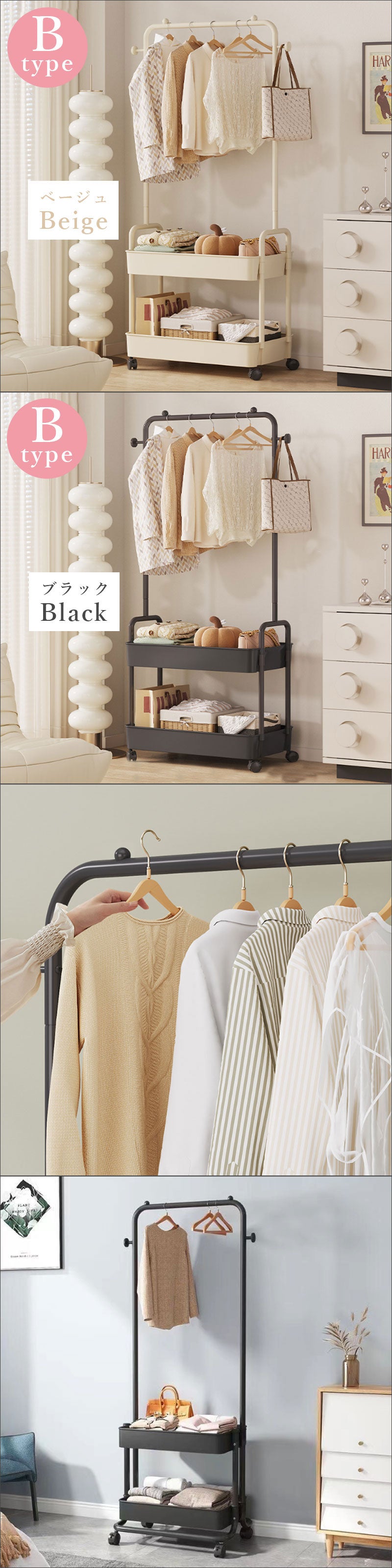 ワゴン付きハンガーラック