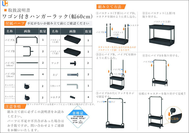 T343 ワゴン付き ハンガーラック キャスター付き