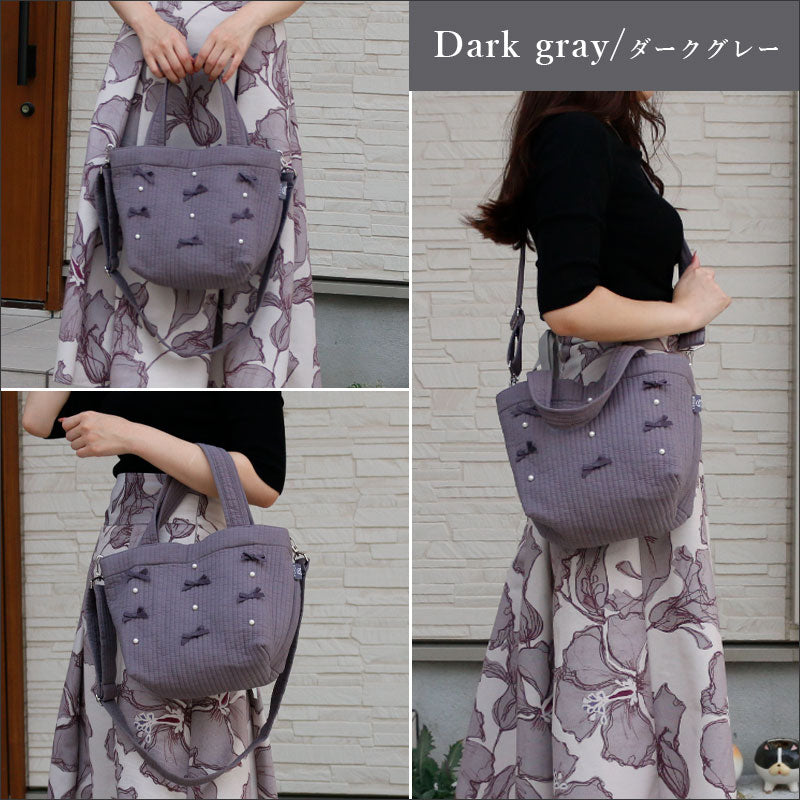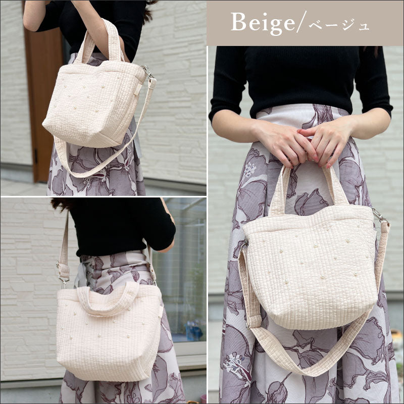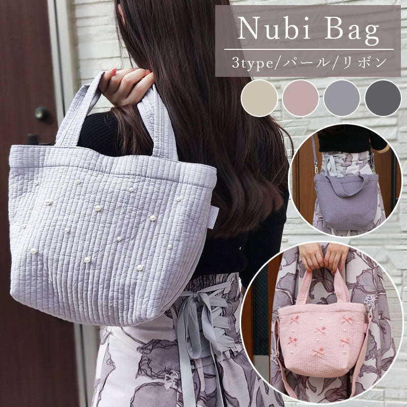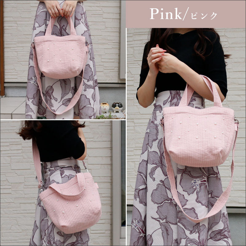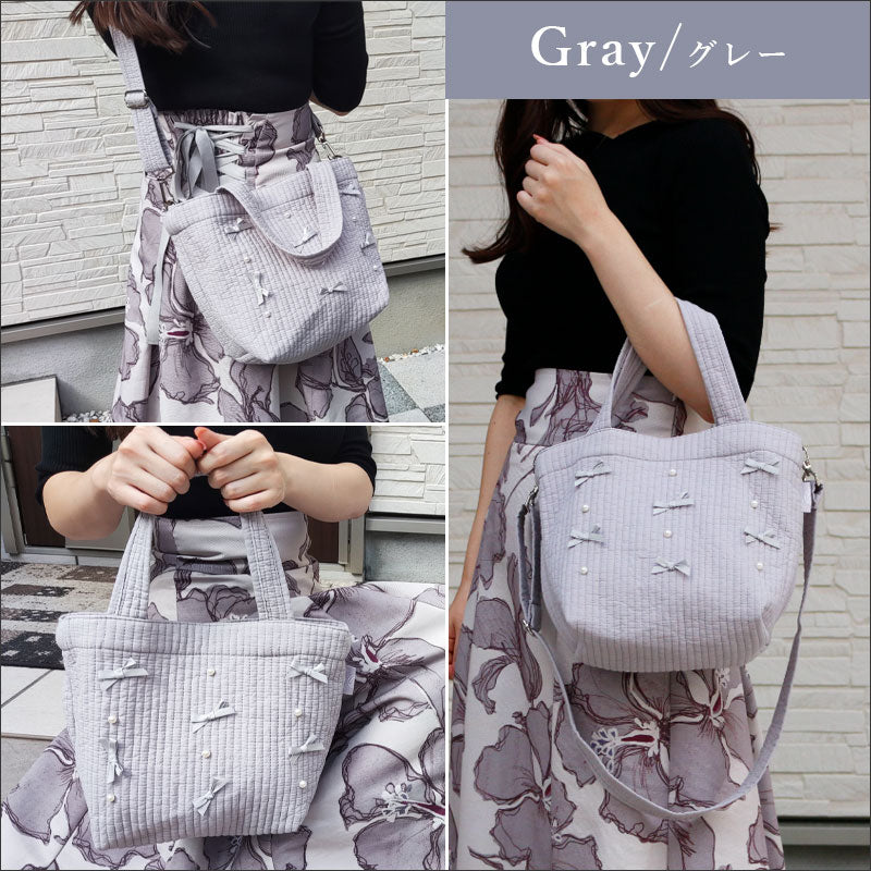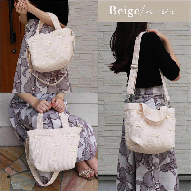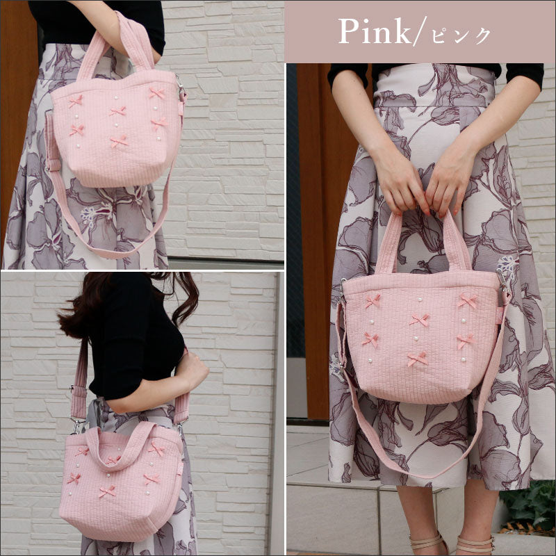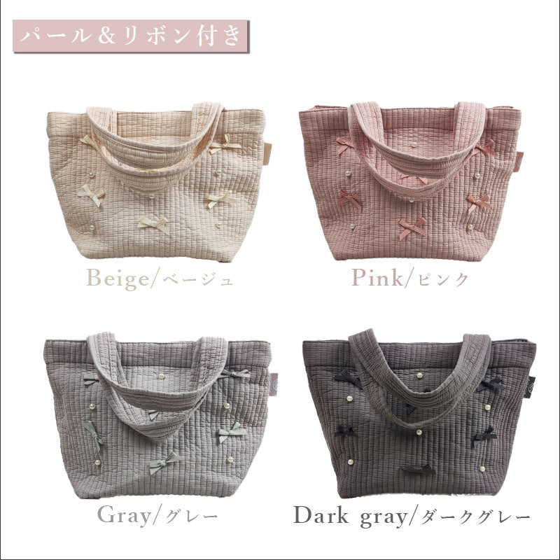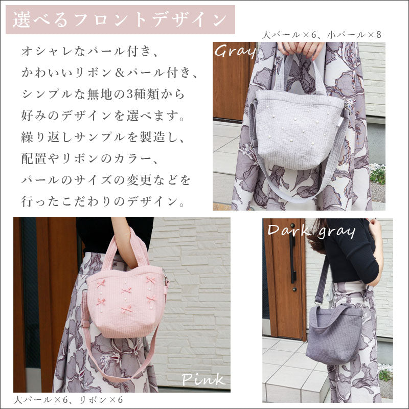 ※生産の都合上、パールやリボンはバッグにする前段階の 一枚の布の時点で取り付けております。そのため、中央か ら上下左右に少しずれた位置となってしまっている場合や バッグの縫製部分に巻き込まれている場合もございますが、 個体差とさせていただいており、不良品と判断しておりません。