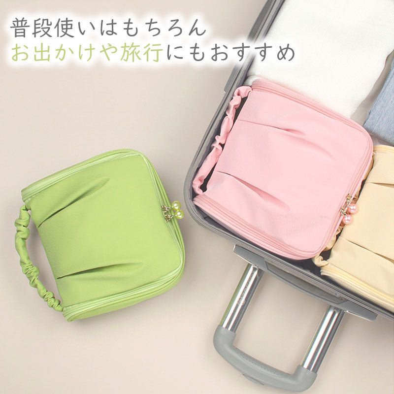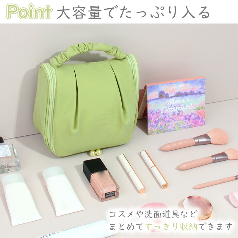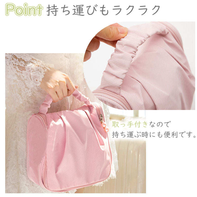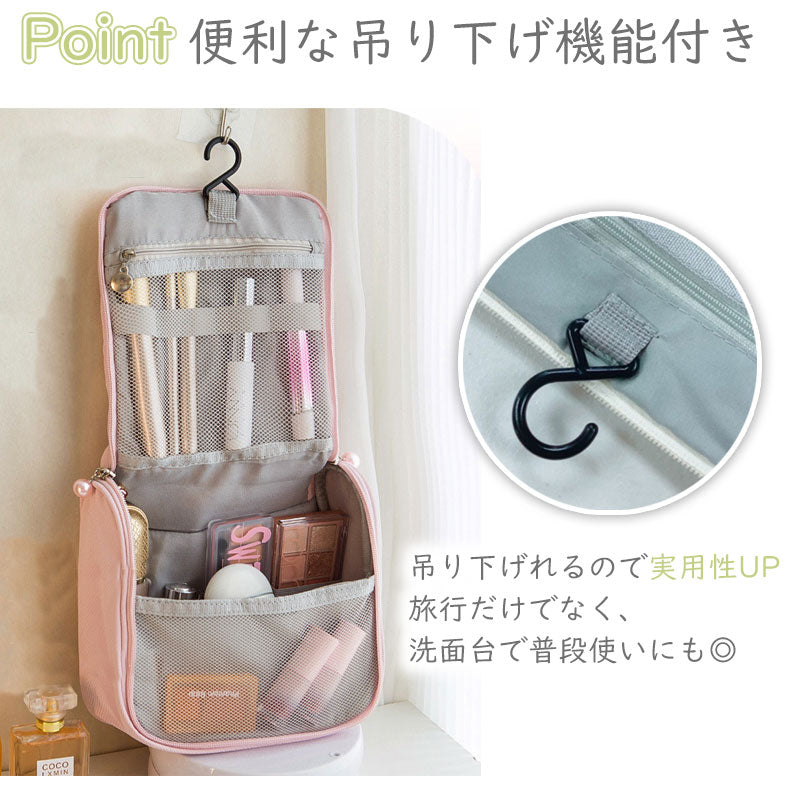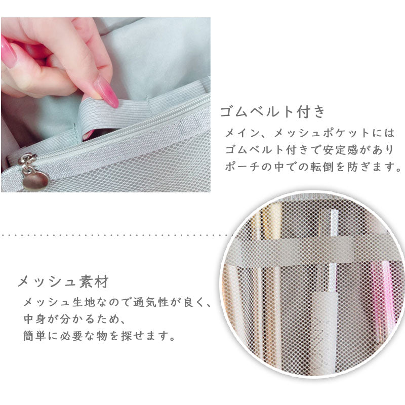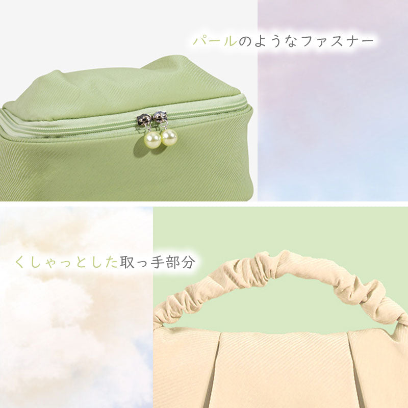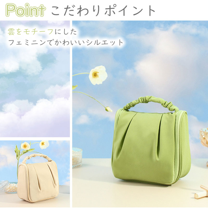 【吊り下げ可能】 フック付きで吊り下げて使用可能!旅行だけでなく洗面台で日常月にも便利です。 【使いやすい】 ポーチの中で仕分けして収納可能な仕切り付き。ゴムベルト付きなので、安定感があり、メッシュ素材で通気性も◎持ち手がついているので持ち運びも楽ちんです♪ 【大容量】 たっぷり入るので旅行の際にコスメさけでなく洗面道具などもまとめて収納可能です。 【デザイン性】 雲をモチーフにしたオシャレなデザイン。ファスナーのパーツ調や取っ手のくしゃっとしたデザインも可愛いポーチです。 |