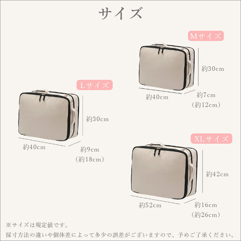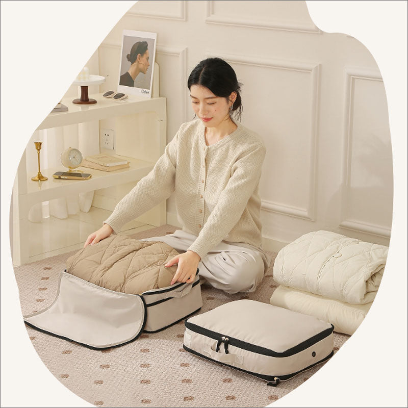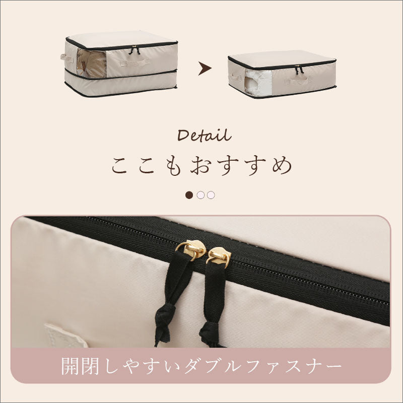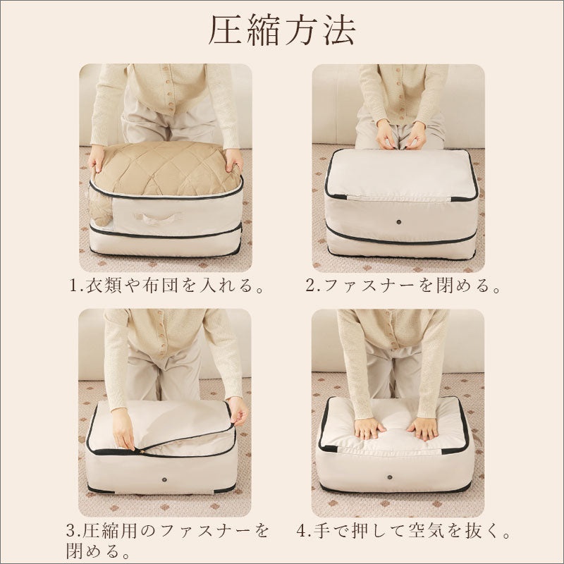ファスナーを閉めるだけで簡単に圧縮可能!約40%のスペースを節約できます。