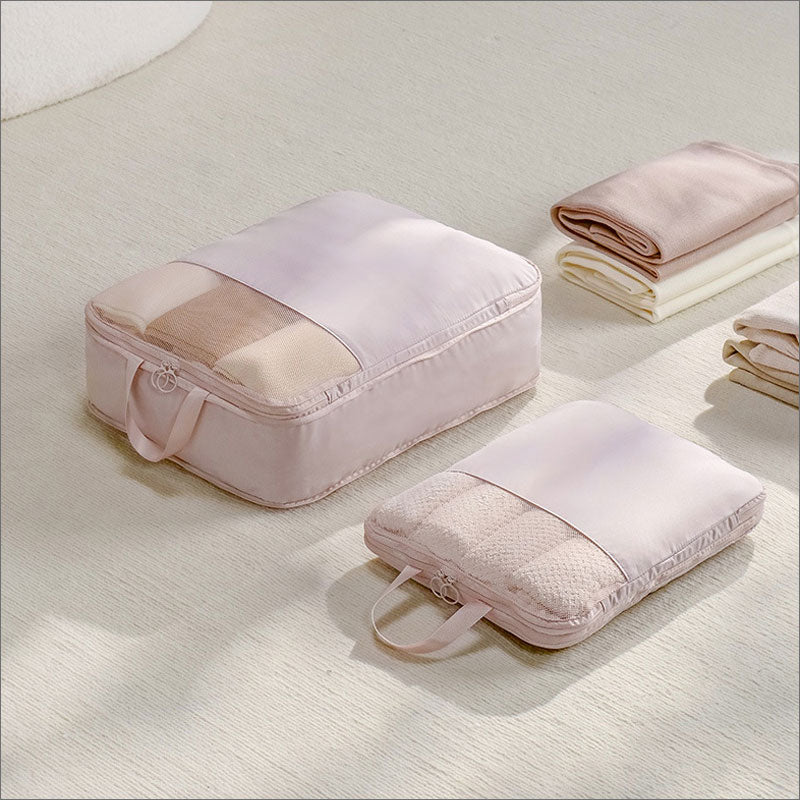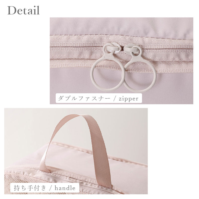 【簡単圧縮】 ファスナーを閉めるだけで簡単に圧縮可能。約50%のスペースを節約できます。 【すっきり収納】 衣類をコンパクトに圧縮できるので、パッキングも楽ちんに。 【通気性】 一部分がメッシュ生地になっているので、通気背もばっちり! 【薄手でコンパクト】 使用しない時でも嵩張らない薄手の生地を使用しています。 【撥水加工】 濡れた手で触ってしまっても中の荷物が濡れないので安心の撥水加工。 【取っ手付き】 持ち運びに便利な取っ手付き。 |