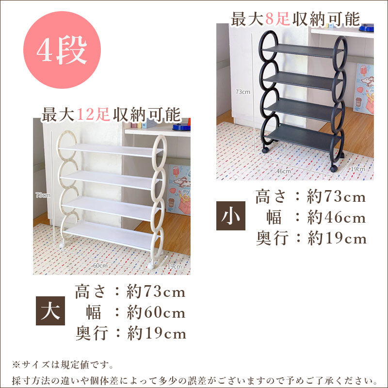 TW374 キャスター付き 簡易シューズラック 3段 4段 4サイズ スリム