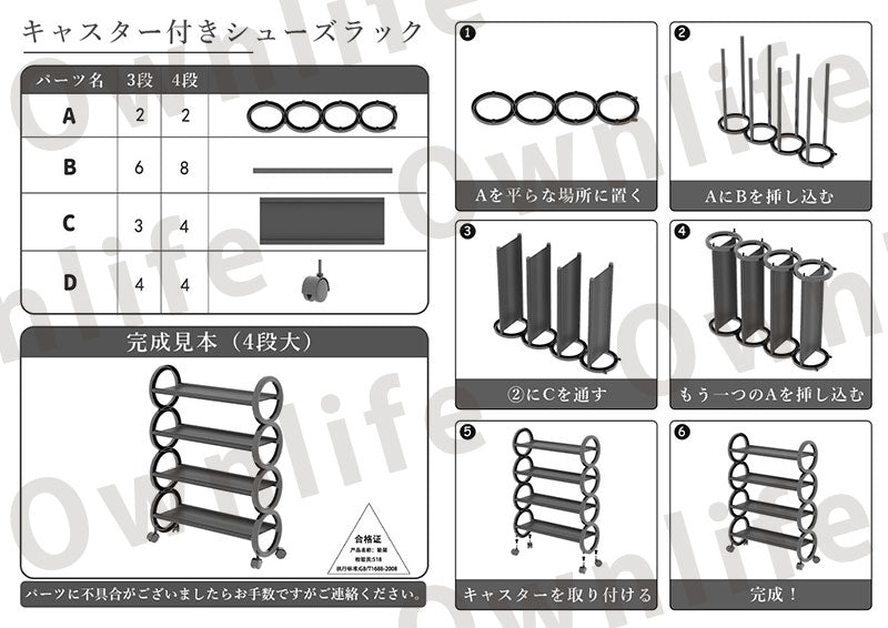 キャスター付き 簡易シューズラック