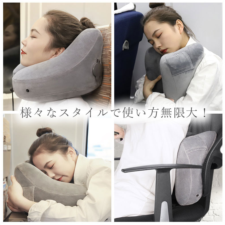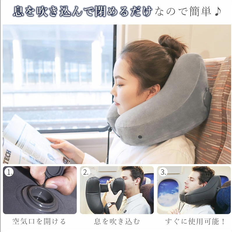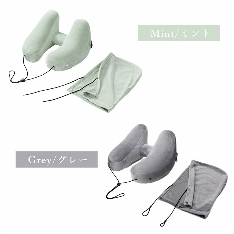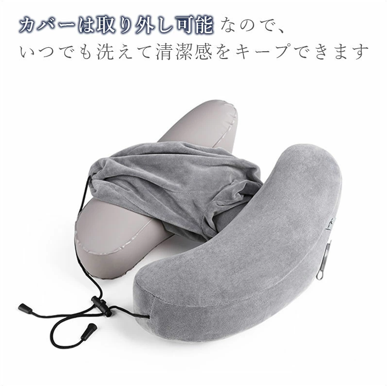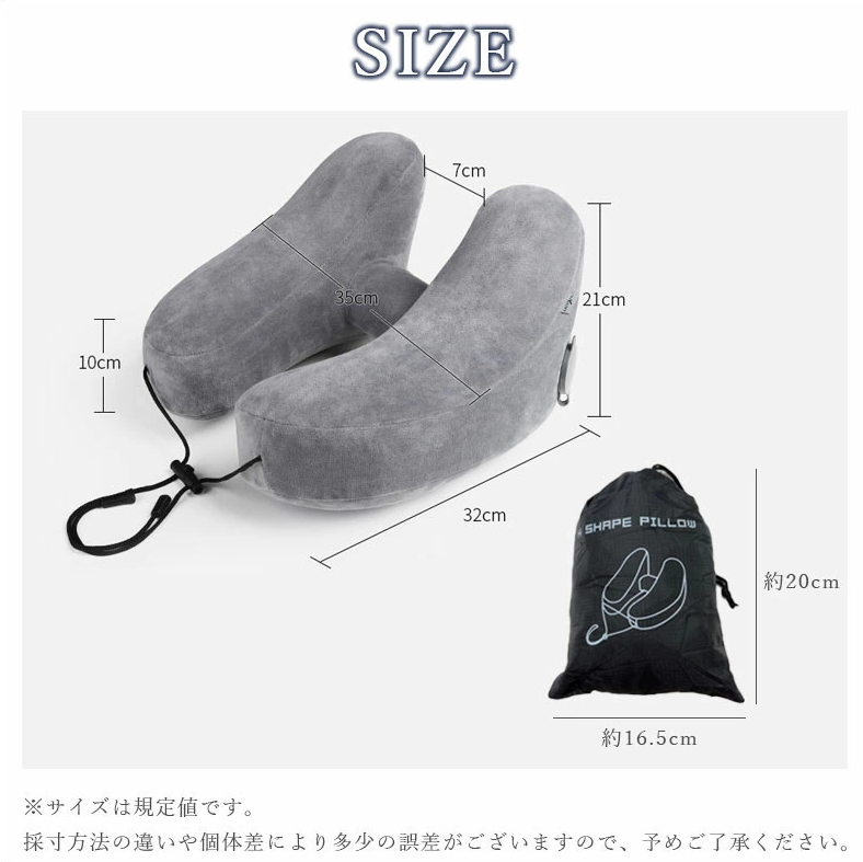空気を抜けばコンパクトサイズに。使用しないときも邪魔にならず、持ち運びに便利なネックピローです。