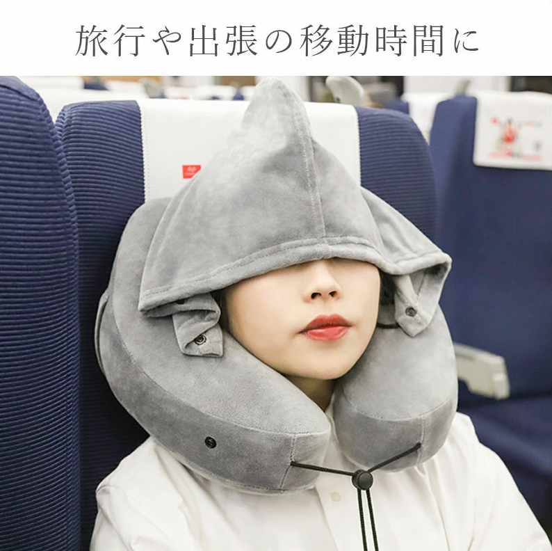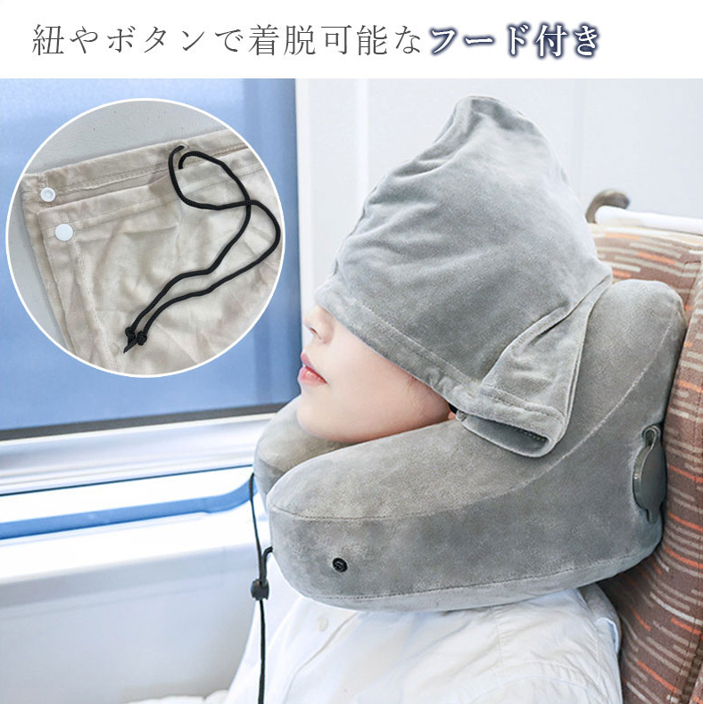 TW375 フード付き ネックピロー H型 収納ポーチ