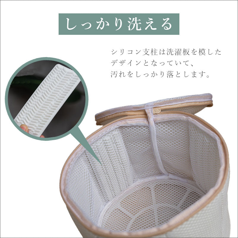 上下には弾力性のあるシリコングローブ+サイドにはシリコン支柱で、ブラジャーをしっかりと保護し、型崩れを防ぎます。