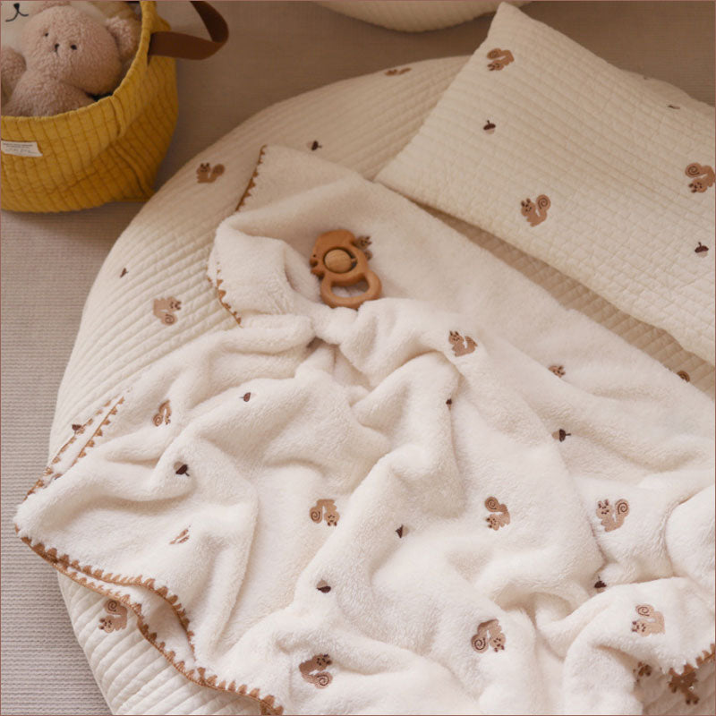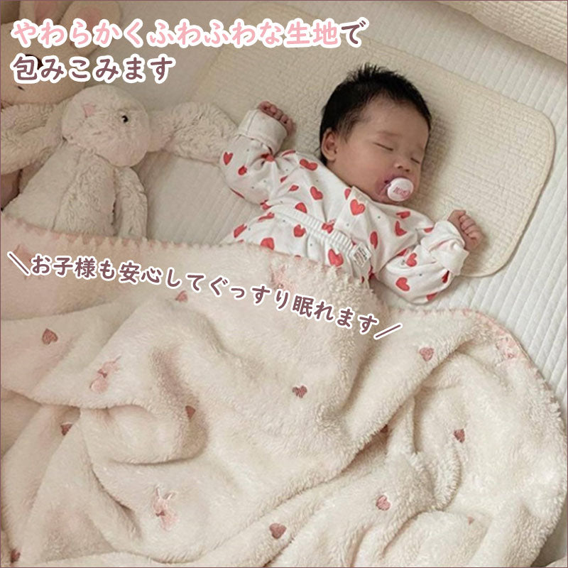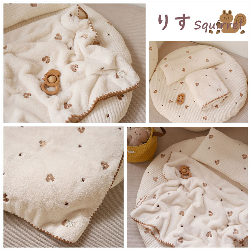 【かわいい】 くまやうさぎ、りすの動物や星、ハート、どんぐりの刺繍がかわいいブランケットです。縁取りのステッチもこだわっていて写真映えも◎ 【ふわふわ】 やわらかくふわふわな生地で包みこみ、お子様も安心してぐっすり眠れます。 【あったか】 起毛で保温性があるので冬でもぽかぽかあったか。 【ふんわり】 ボリュームがあってふんわり感があります。重さ約380gと軽量。 【多用途で使える】 お昼寝ケットとしてだけでなく、ベビーカーや社内用に持ち歩いても便利! 大判なので折りたたんでハーフケットとしての使用や、大人がひざ掛けとして使用もできます。 |
