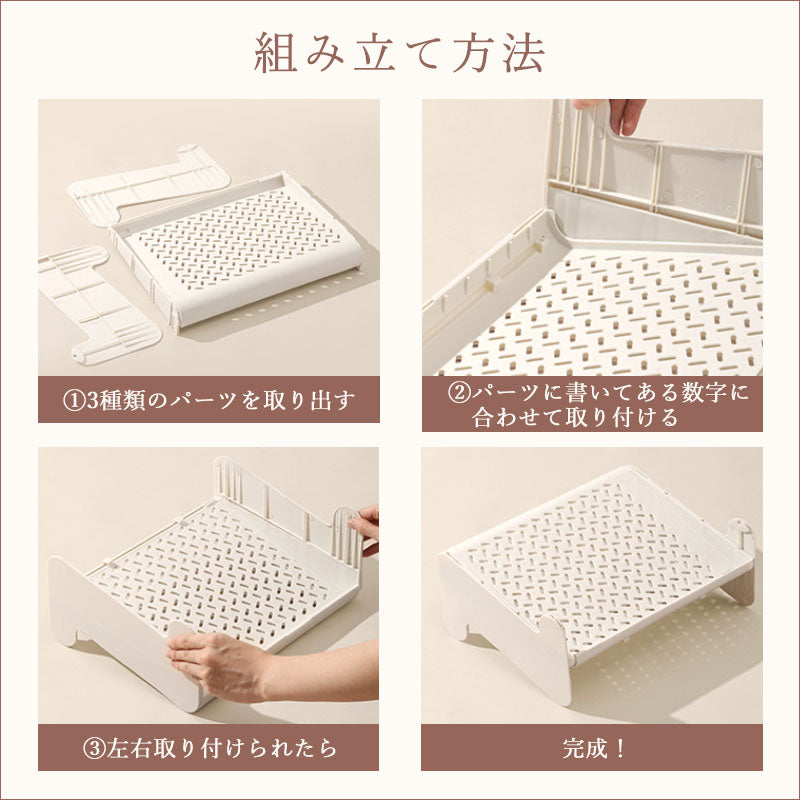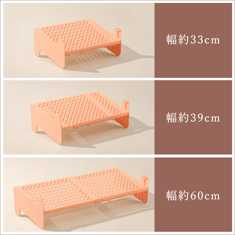 【伸縮可能】 使用したい幅に合わせて自由に伸縮が可能なので、省スペースにもぴったりです。 【積み重ね】 好きな高さに積み重ねて使用が可能。使用場所に応じてアレンジができます。2通りの組み合わせ方でハイカットやヒールのある靴の収納も可能です。 【落下防止】 カーブのデザインが靴の落下を防ぐため滑り落ちる心配がありません。 【通気性】 プレート部分は穴があいているので通気性も◎ 【多用途】 自由に組み合わせて使えるので、玄関はもちろん、シューズボックスの中やデスク下、お部屋で雑貨やおもちゃ、ぬいぐるみを飾って収納も可能です。 |