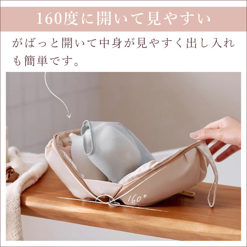 【コンパクト】 かさばる下着をすっきりコンパクトに収納が可能です。 【整理整頓】 仕切りがあるので衣類ごとに分けて整理整頓できます。 【使いやすい】 160°に開くので中身が分かりやすく取り出しやすい!持ち手付きなので持ち運びにも便利です。 【大容量】 超軽量なのにたっぷり入ってとっても便利♪長期の旅行や出張にもおすすめの大容量です。 【高品質素材】 丈夫で撥水加工のされた生地。間には柔らかい緩衝材も入っていてふわふわな触り心地です。 |